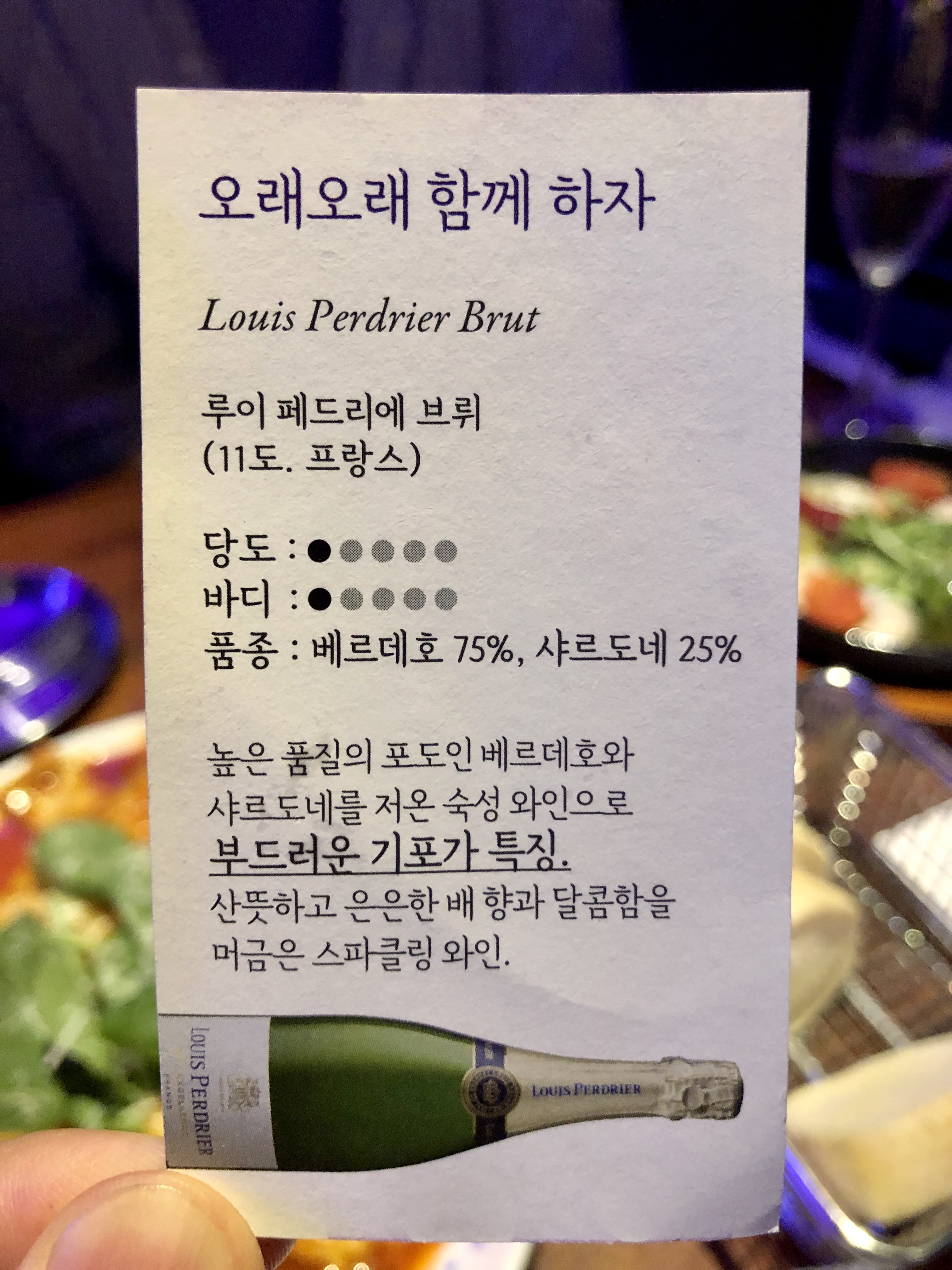 우선 와인은 오래오래 함께 하자 라는 이름이 달린 루이 페드리에 브뤼를 주문했다.