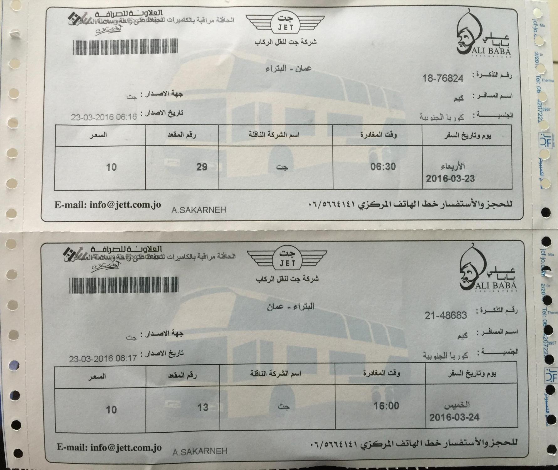 버스표는 편도 10 디나르 (약 17,000원)이고, 왕복으로 발권하였습니다.