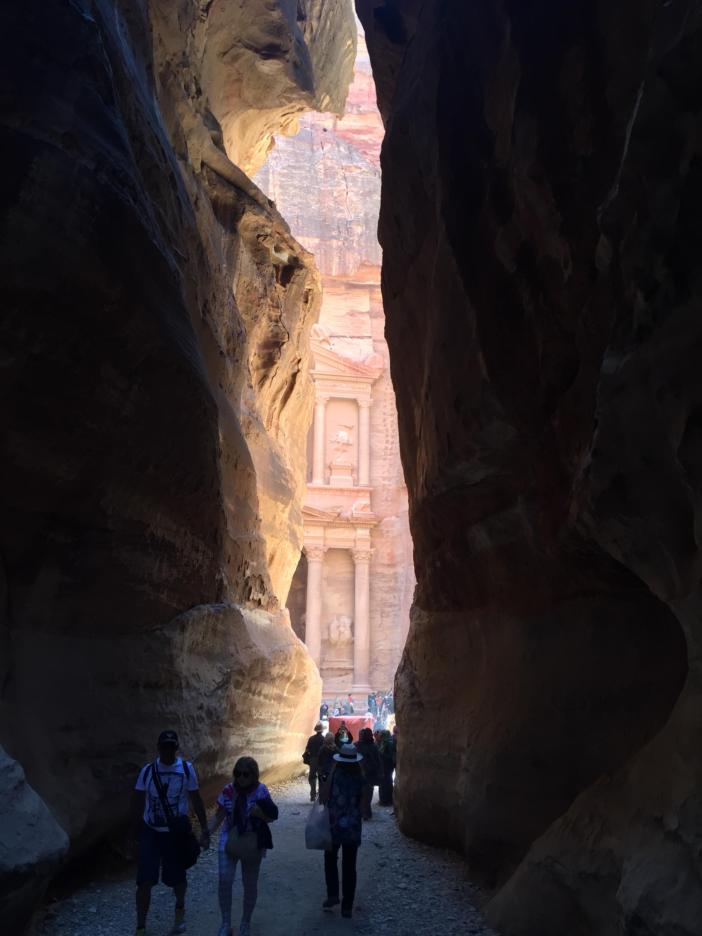 저 좁은 시크라는 길이가 1km가 넘고 양 옆으로 80m 높이의 절벽이 우뚝 솟아 있는 좁은 골짜기를 따라