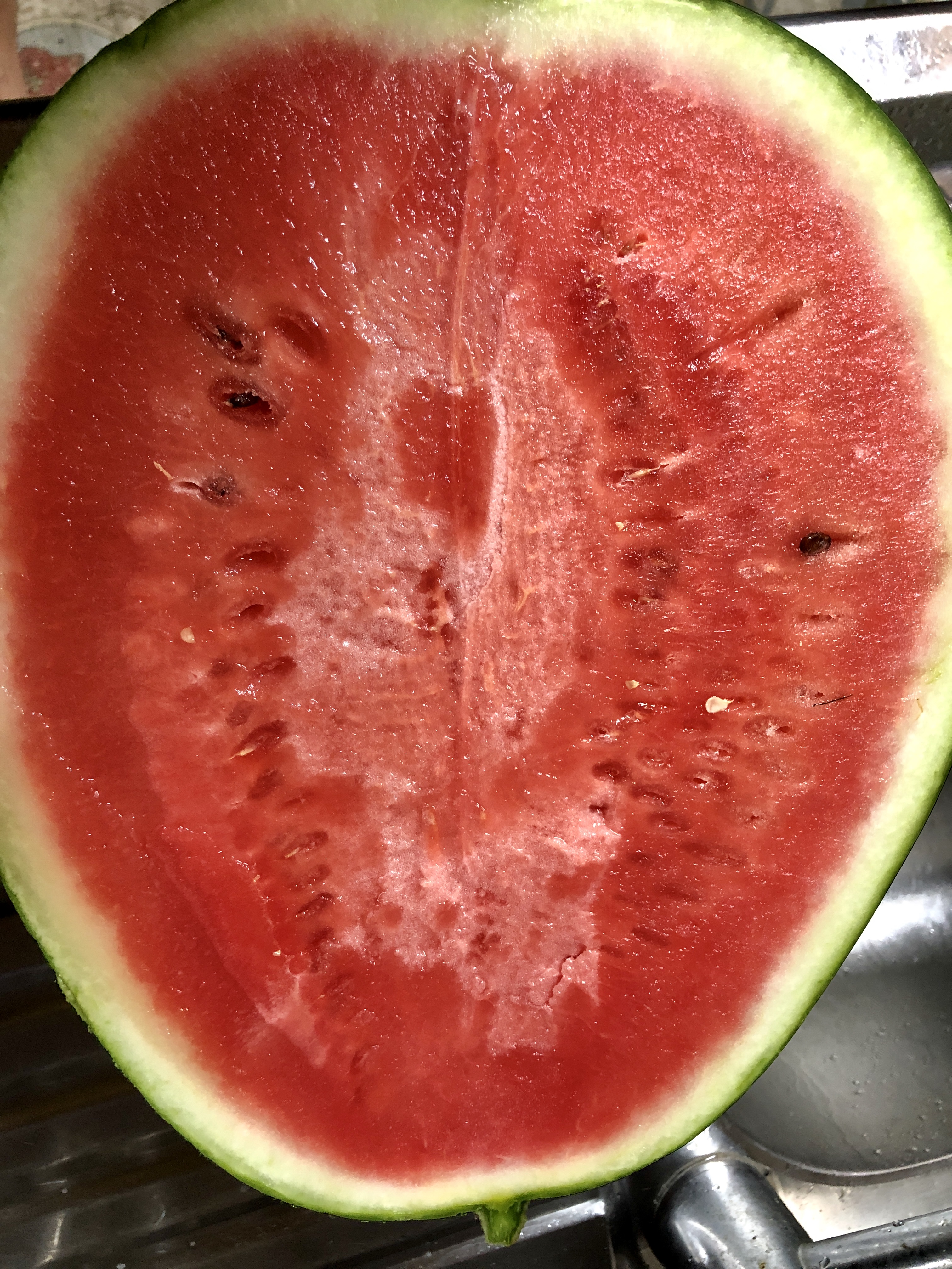 수박이 생각보다 크고 무거워서 반 쪼개는데도 칼이 다 안들어가서 반대편으로도 잘라줘야 했어요
