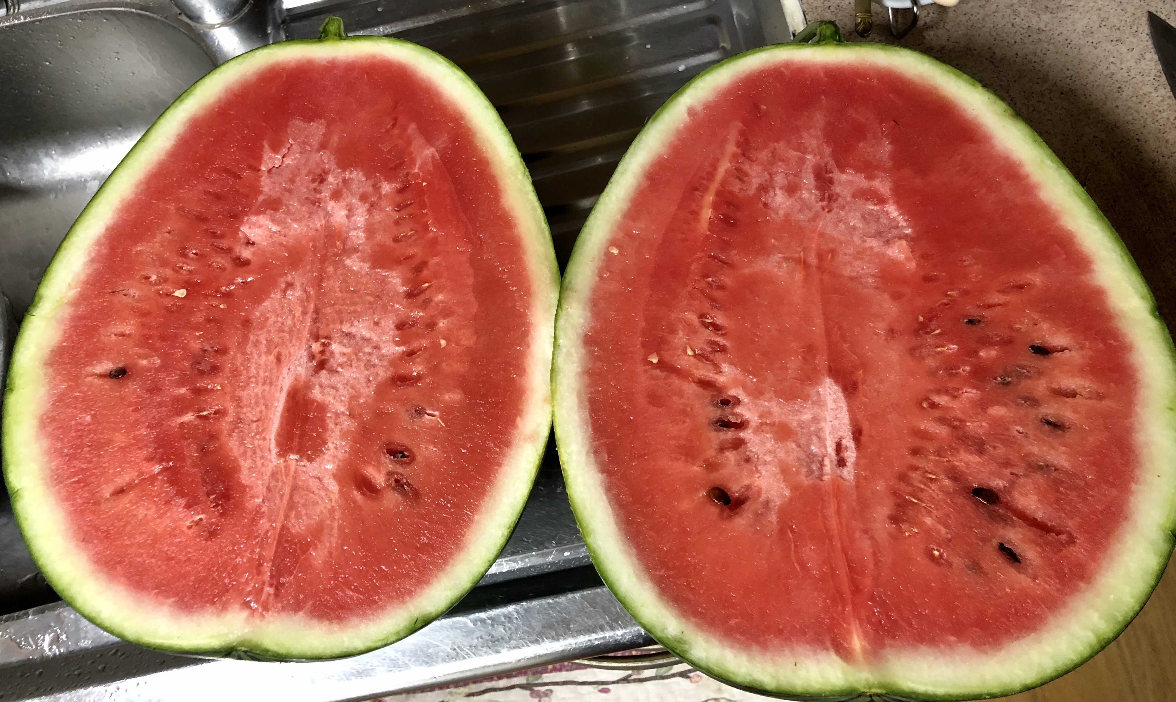 수박이 생각보다 크고 무거워서 반 쪼개는데도 칼이 다 안들어가서 반대편으로도 잘라줘야 했어요