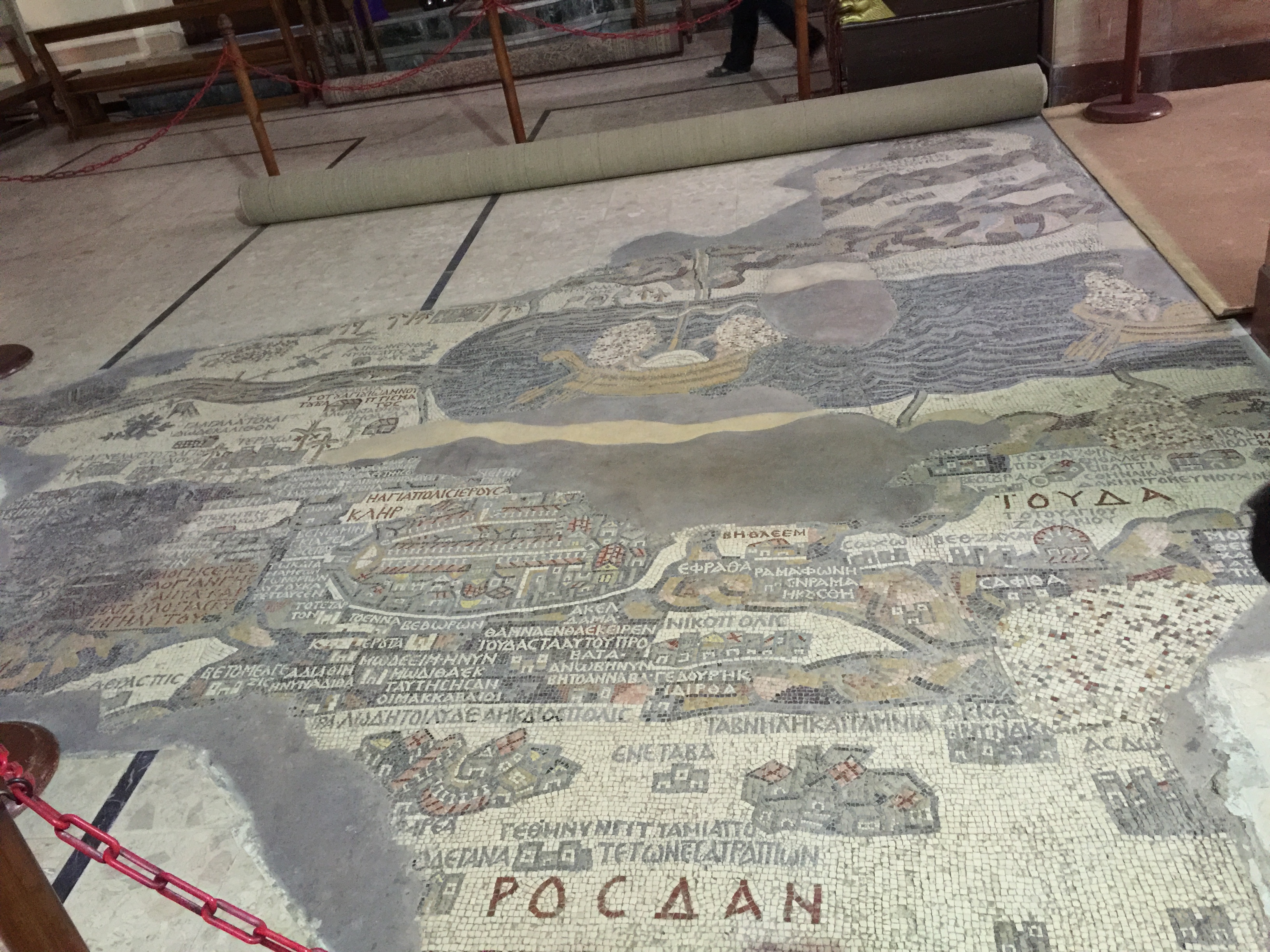 모자이크는 2만개 이상의 작은 돌조각으로 만든 지도로 예루살렘을 포함해 당시 중동 지역을