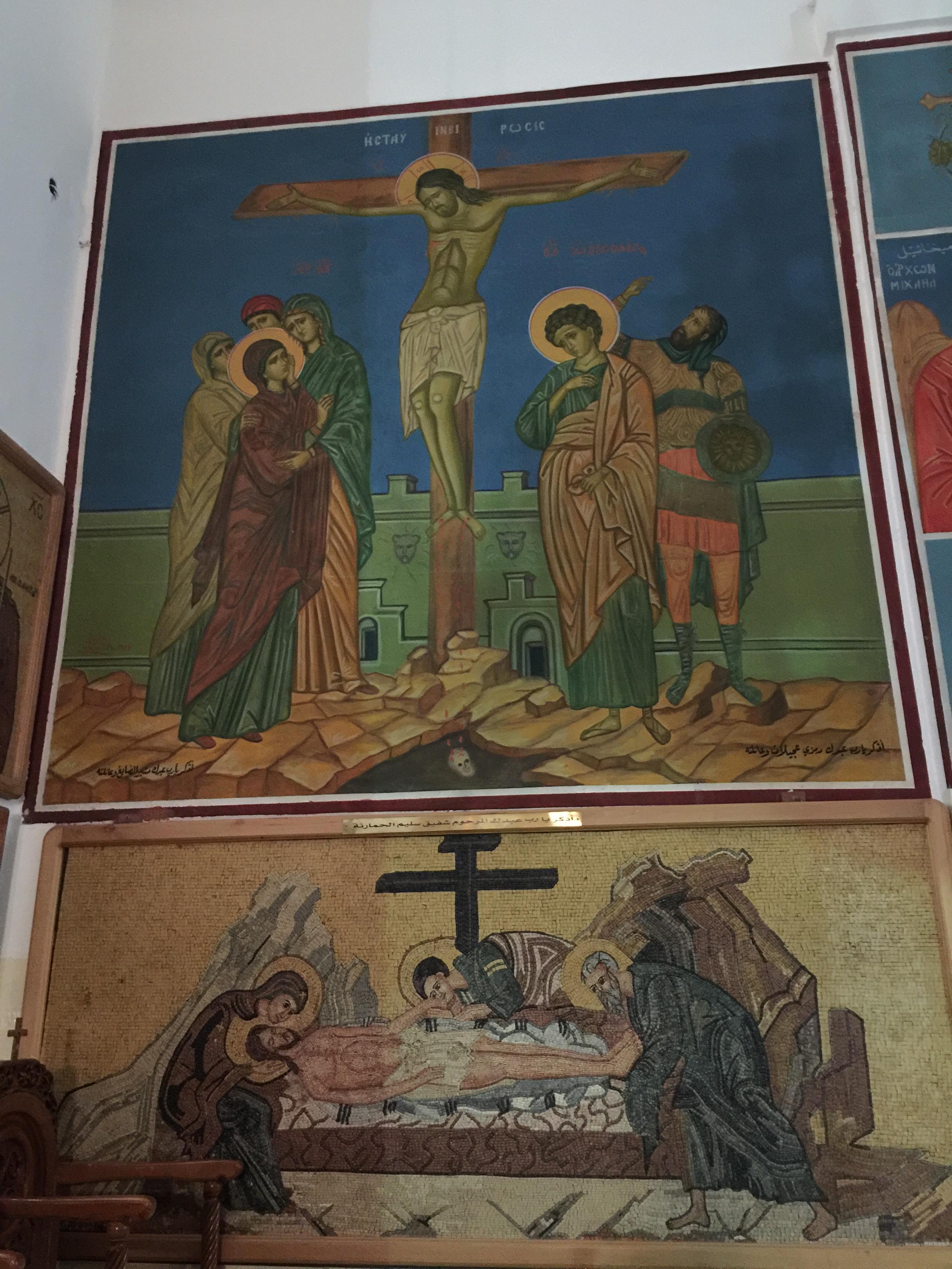 성조지교회는 마다바에서 가장 유명한 비잔틴 모자이크 장식을 갖고 있는 그리스 정교회이다.