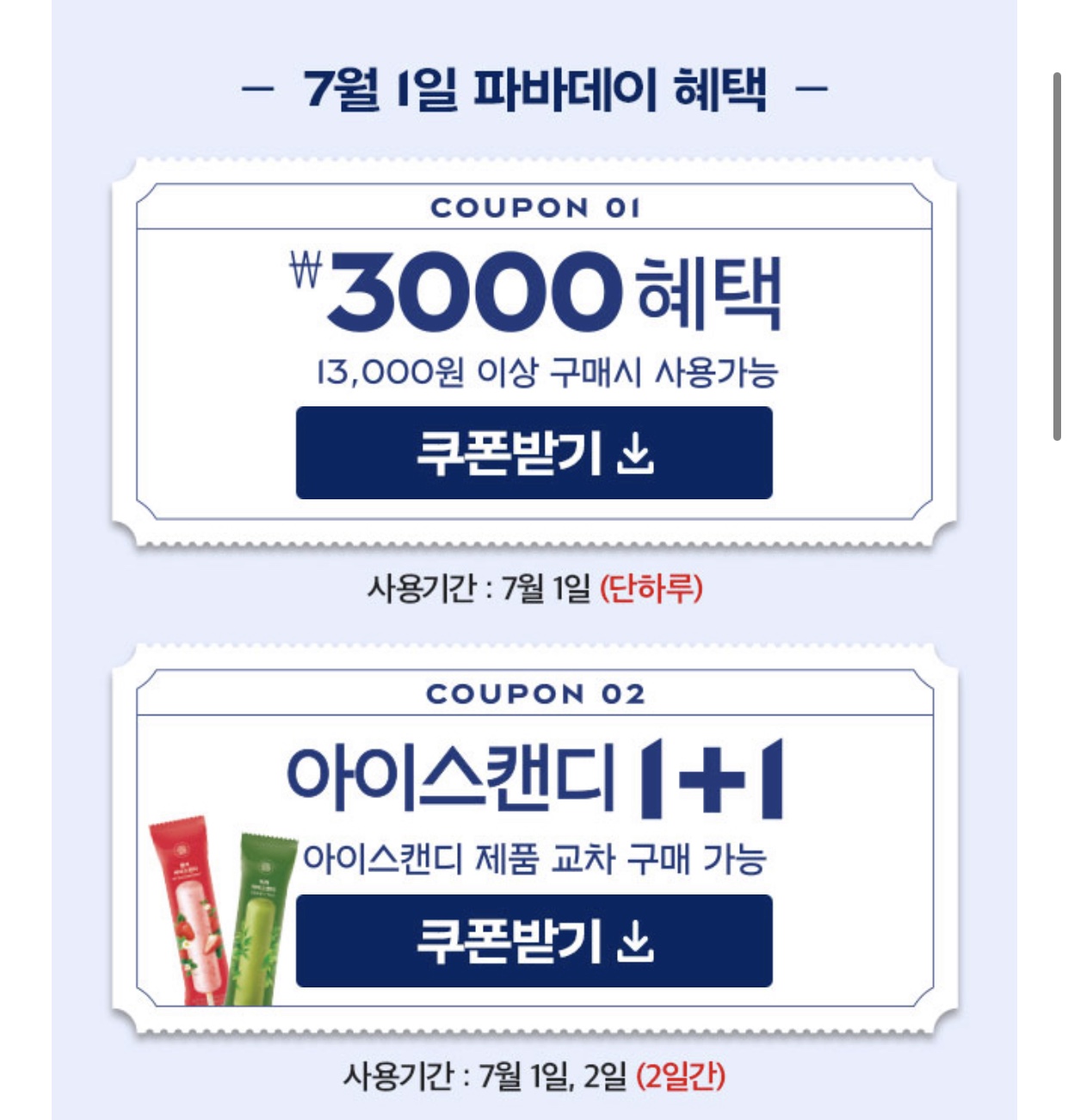 2) 아이스캔디 1+1 제공 (아이스캔디 제품 교차 구매 가능)