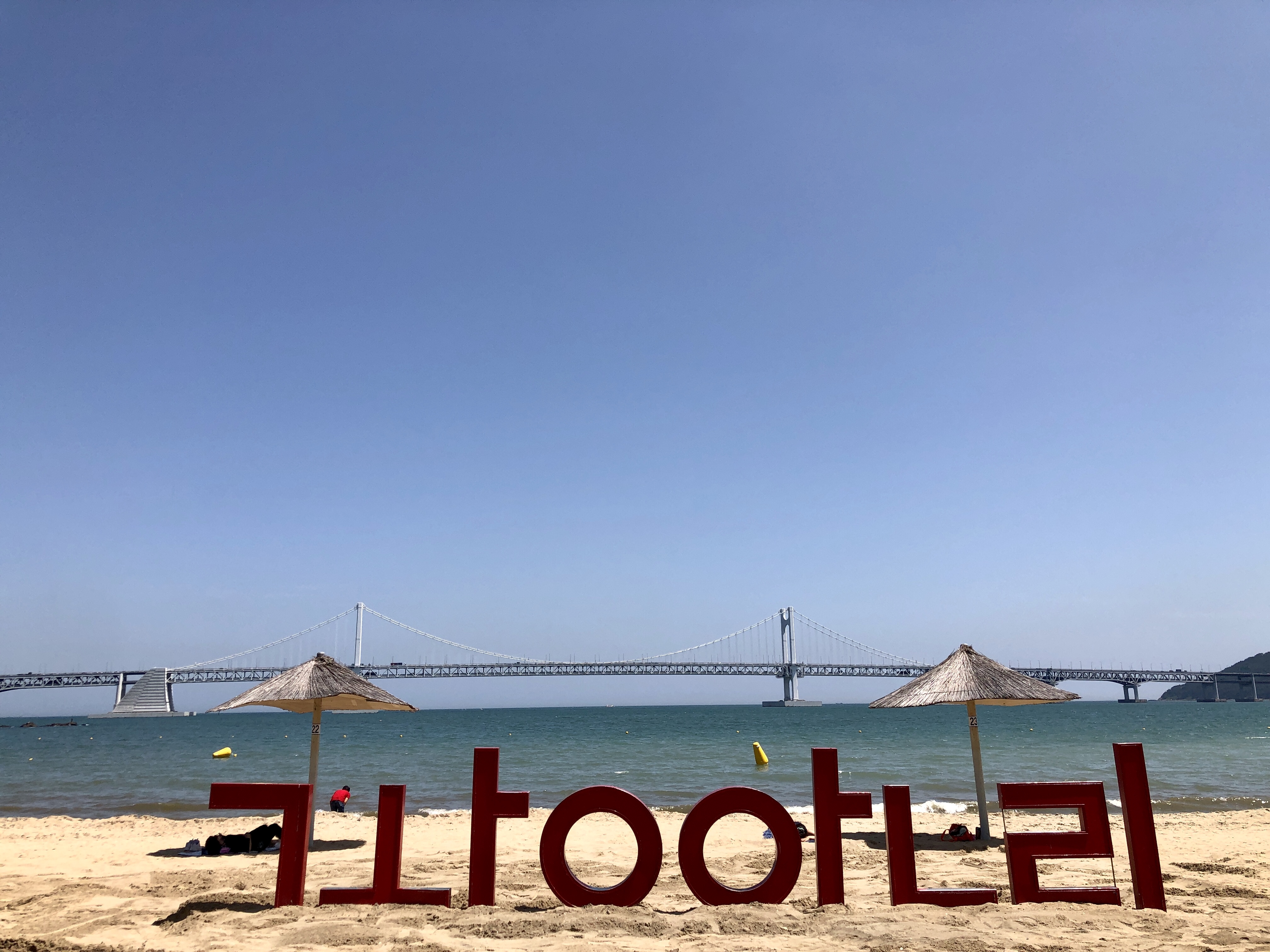 점심을 먹고 부산바다를 느끼러 광안리 해수욕장으로 이동했습니다.
