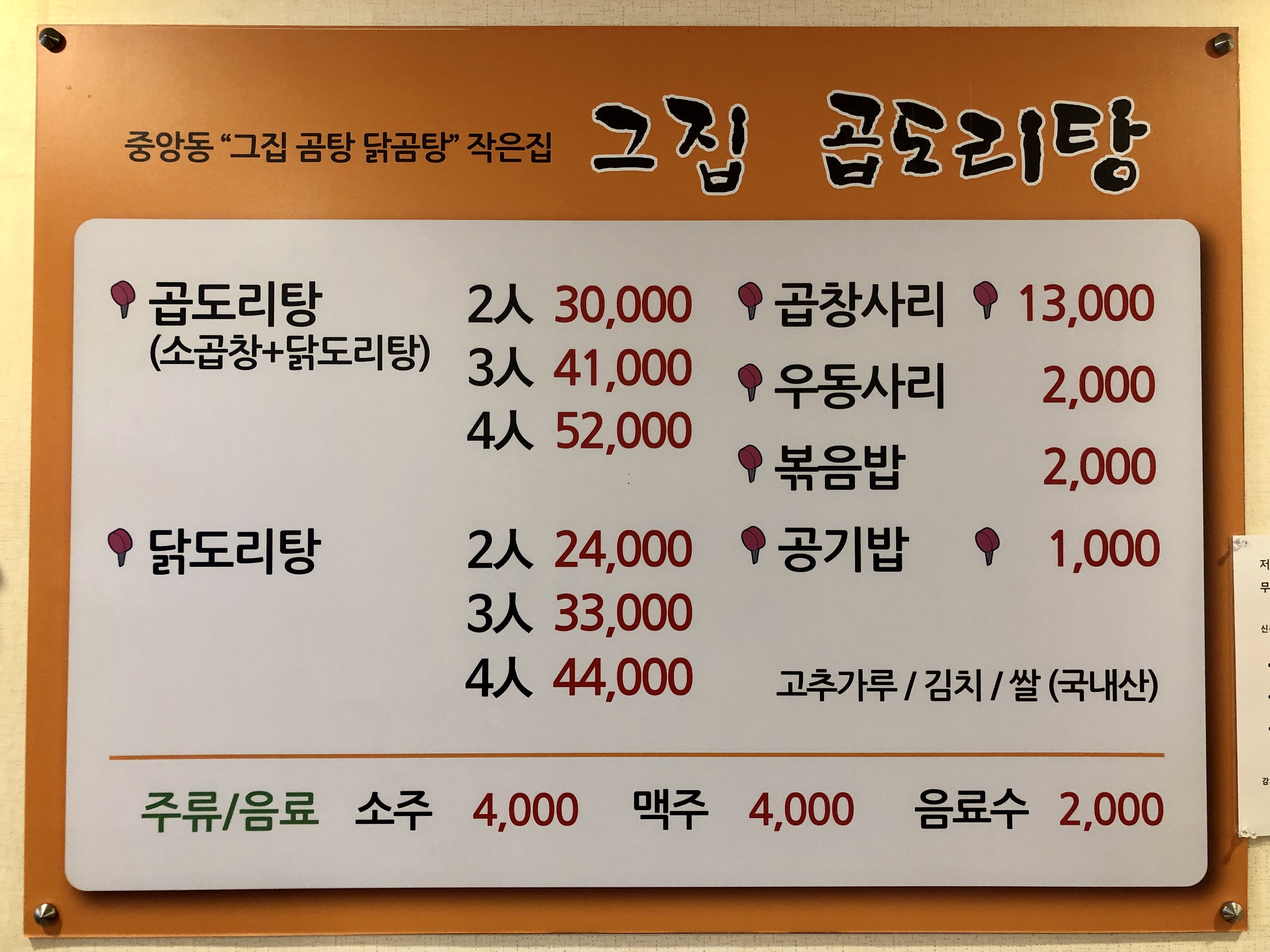 소곱창 + 닭도리탕의 합성어로 곱창과 닭고기가 들어간 탕이었습니다.