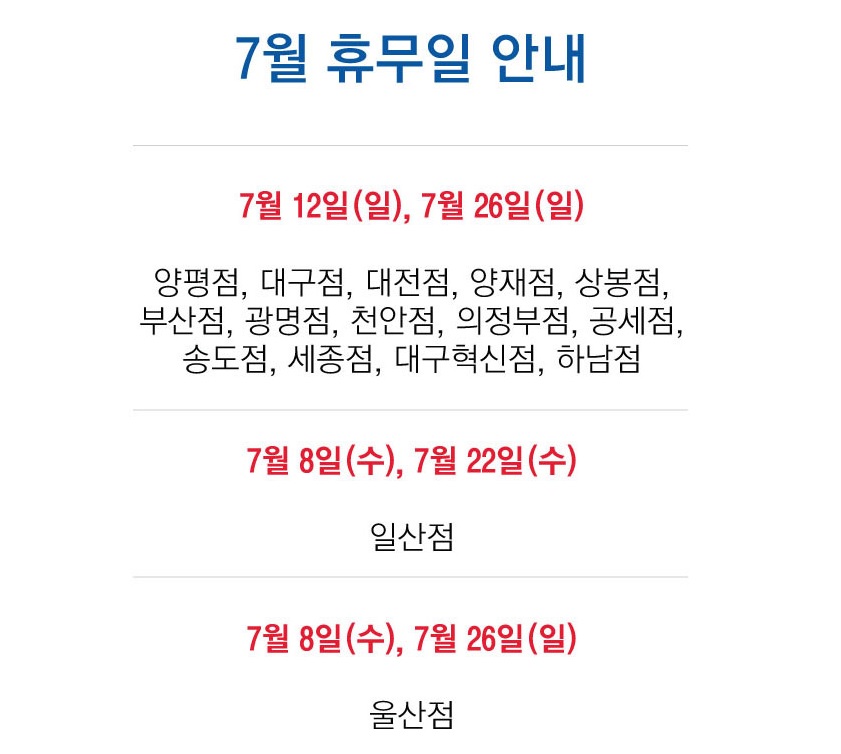 7월 홈플러스 휴무일 안내