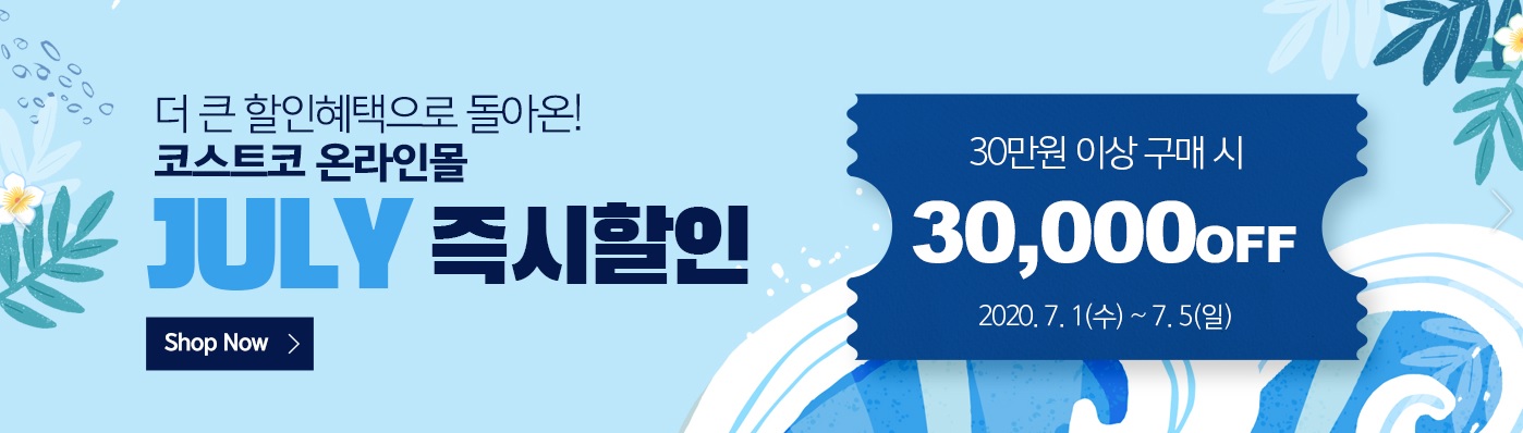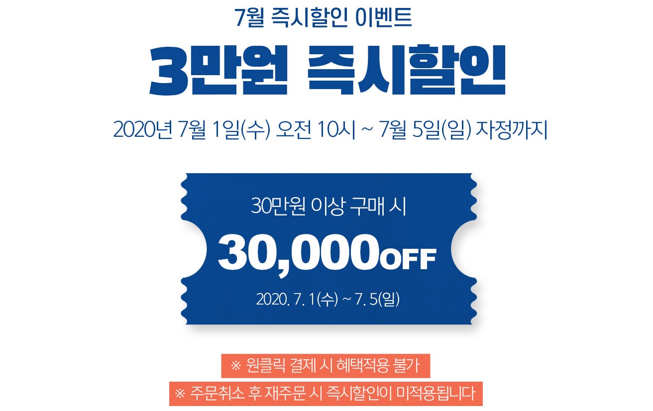 1) JULY 즉시할인 이벤트 => 30만원 이상 구매시 30,000원 할인