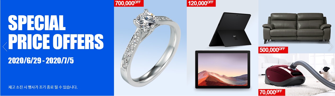 2) Special Price offers => 특정상품 최대 70만원까지 할인