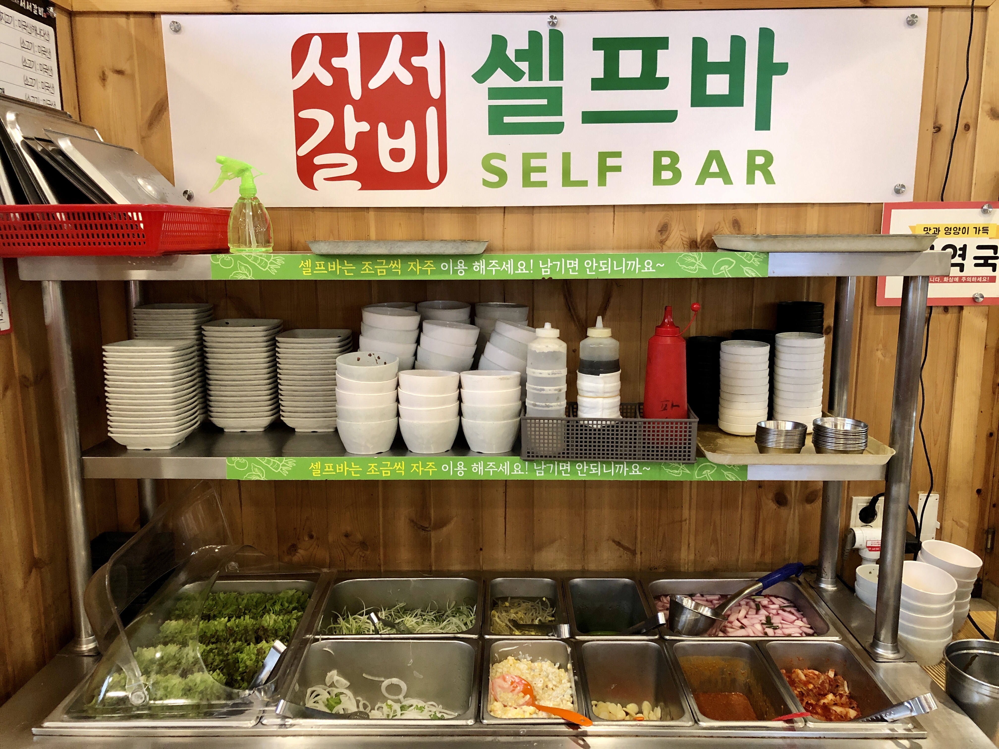 먹다가 부족한 반찬은 셀프바에서 가져올 수 있는데, 한번에 너무 많이 가져와서 아까운 음식을
