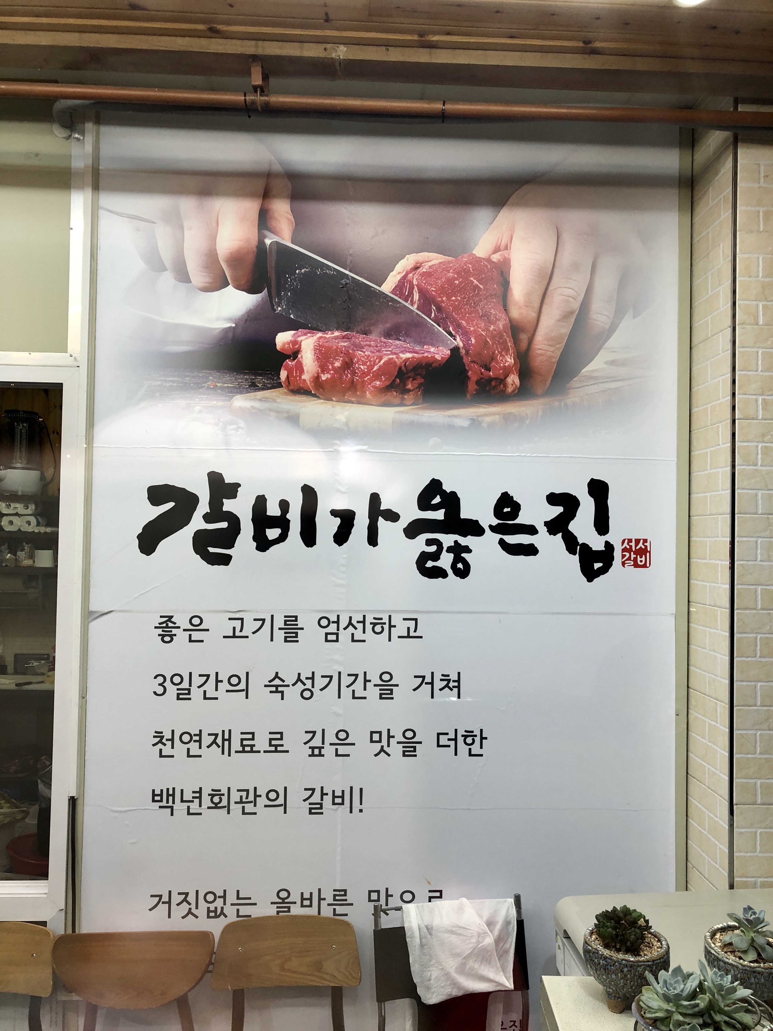 입구에 들어가기 전, 백년회관서서갈비의 대표문구 '갈비가옳은집'이 써 있습니다.
