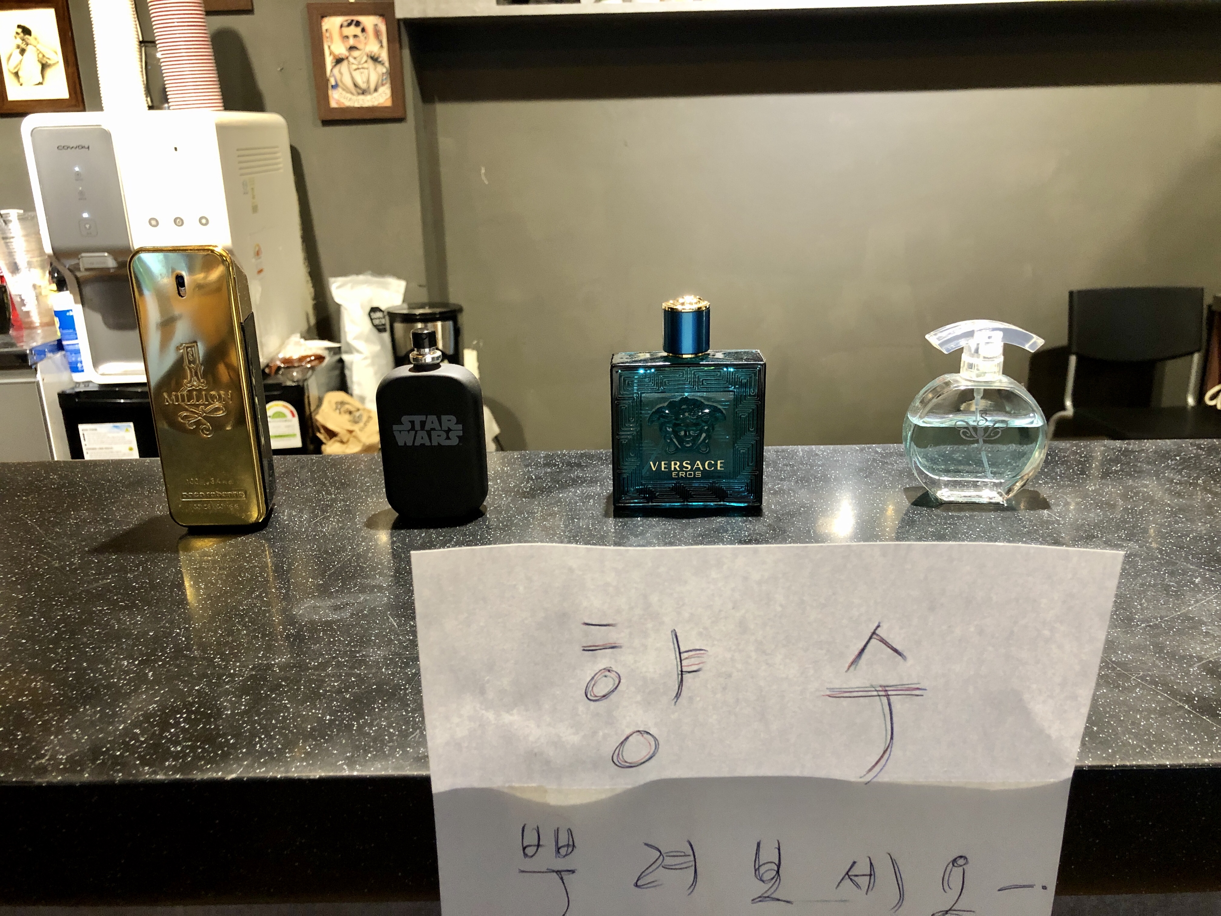 샵에 도착하면 웰컴드링크를 주시는데 맥주,캔커피,위스키,아이스아메리카노 등이 있다고 해요