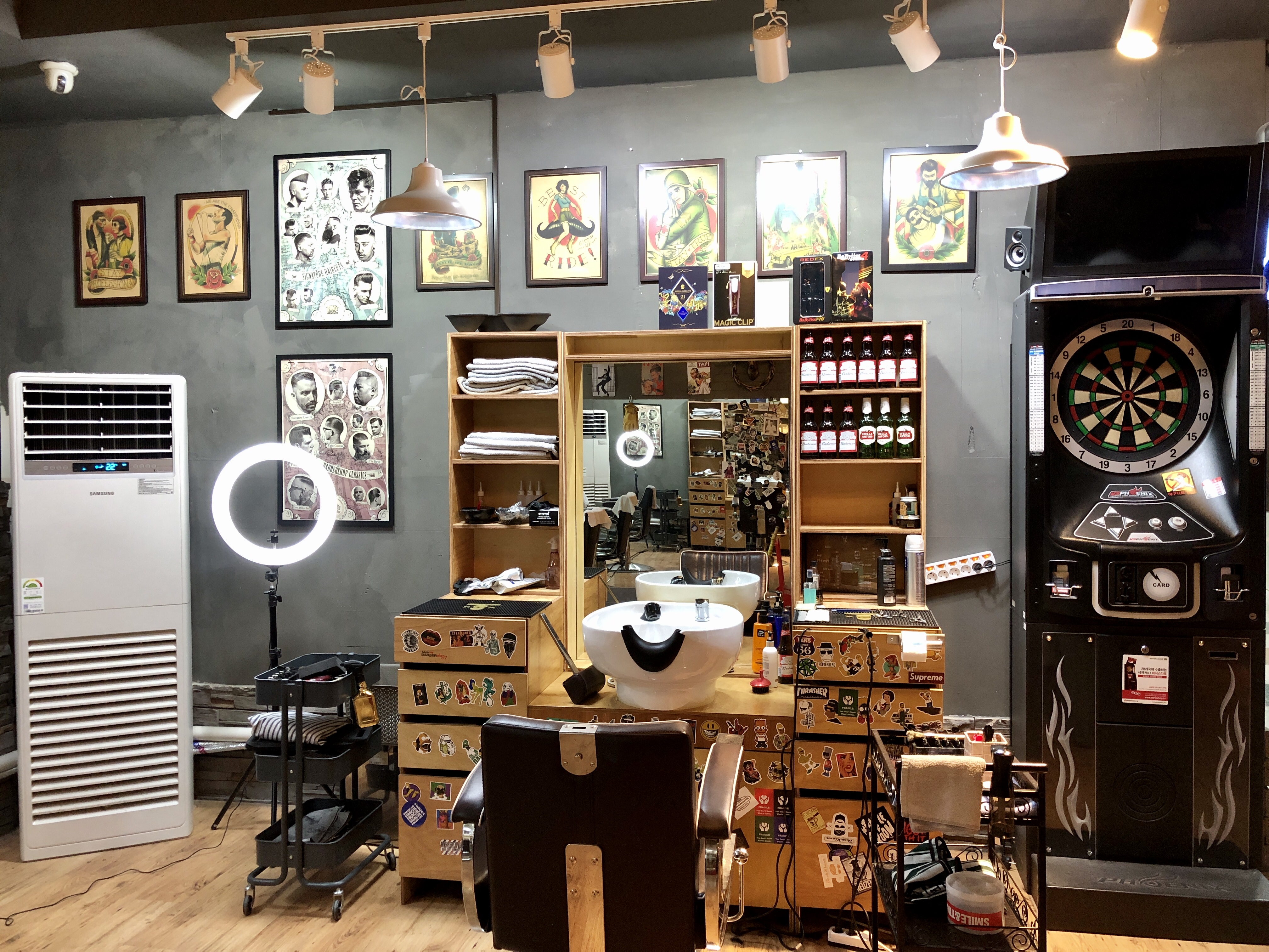 어릴 때 다니던 이발소의 모습도 가지고 있으면서, 트렌디한 인테리어와 다트판