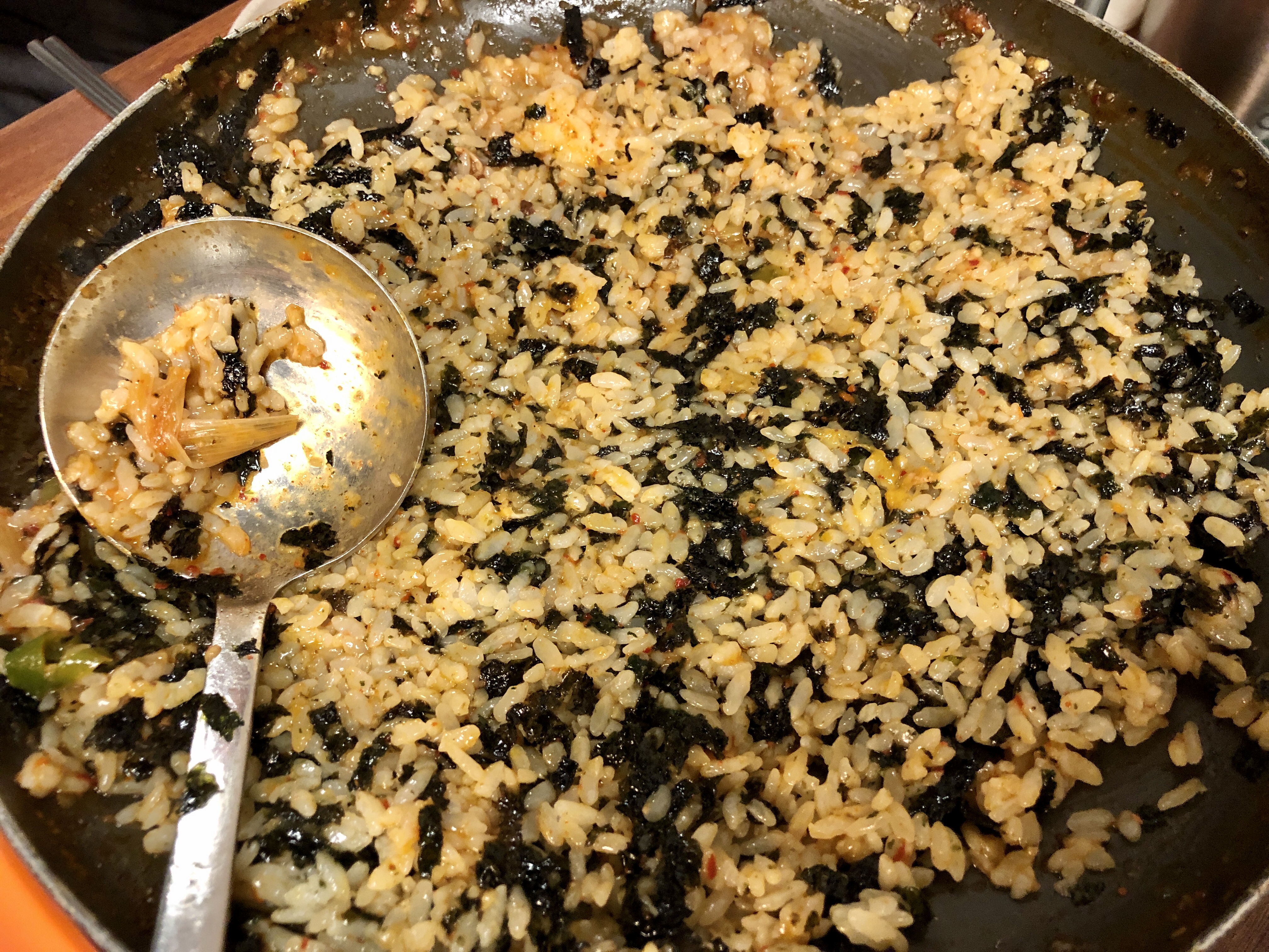 형들 세명과 동생한명과 저까지 다섯명이서 중 사이즈 2개와 밥 4개를 볶아 먹었네요