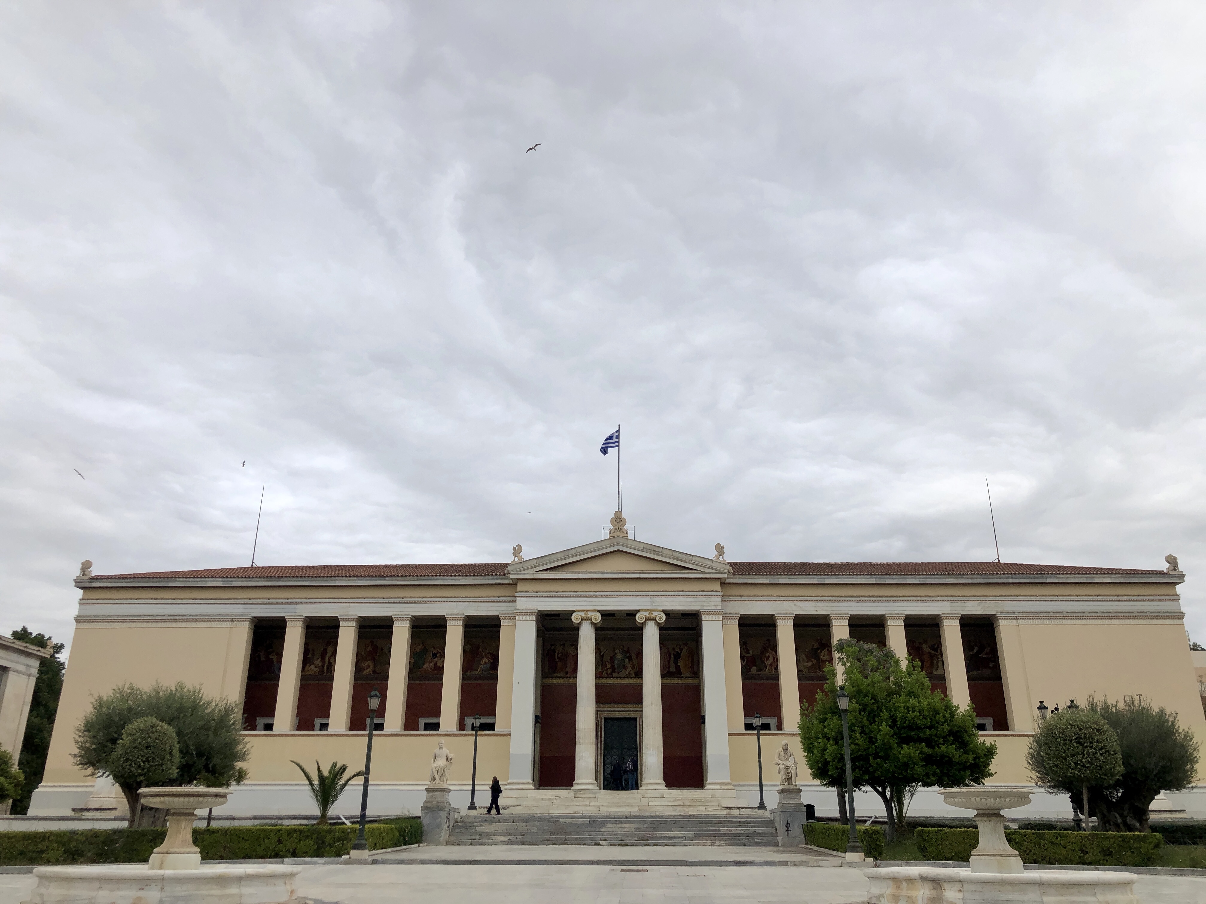 입장하진 않고 간단히 앞에만 둘러본 후 버스를 타고 아테네 학술원과 아테네 대학교가 있는 곳으로 이동한다.