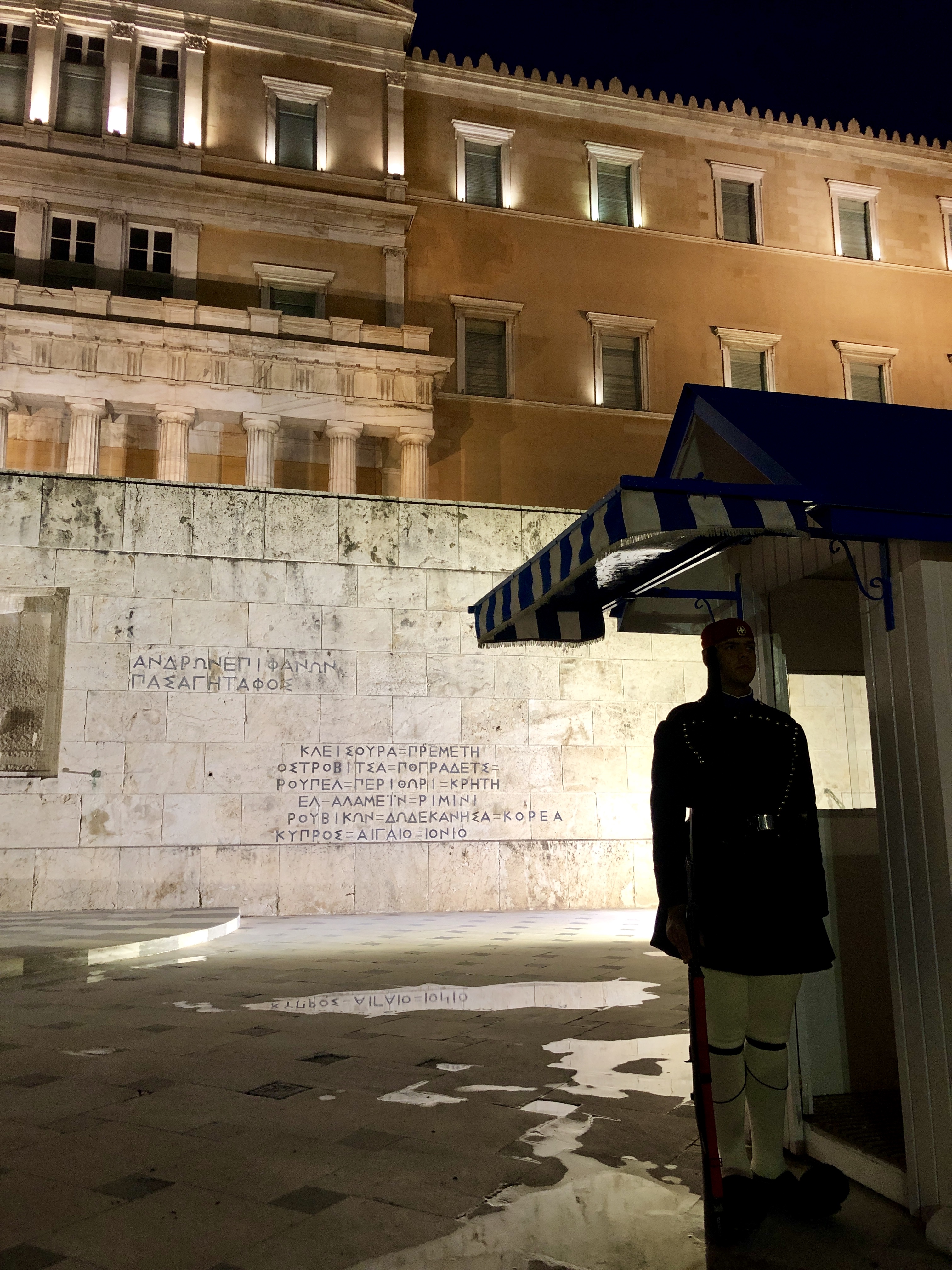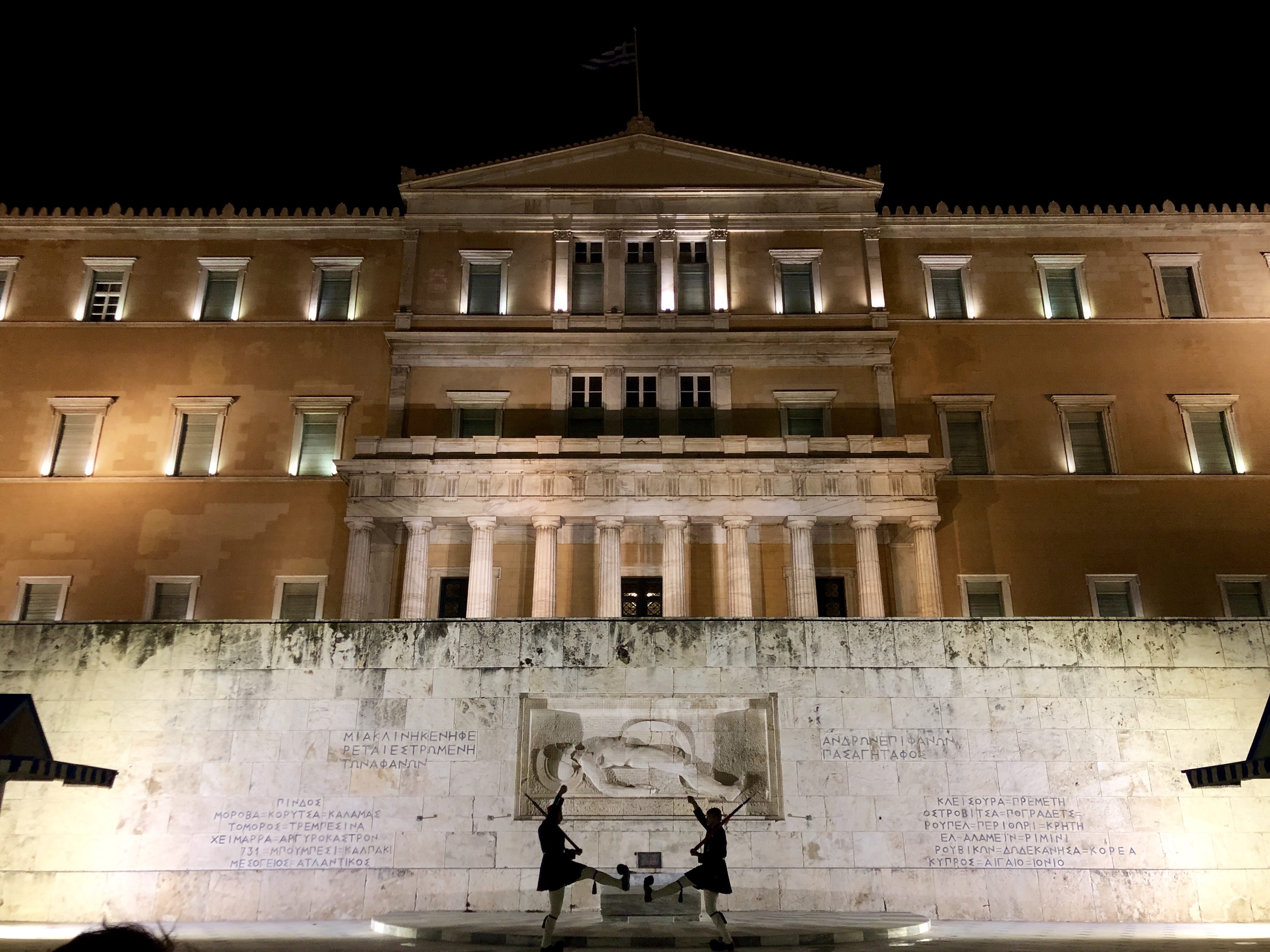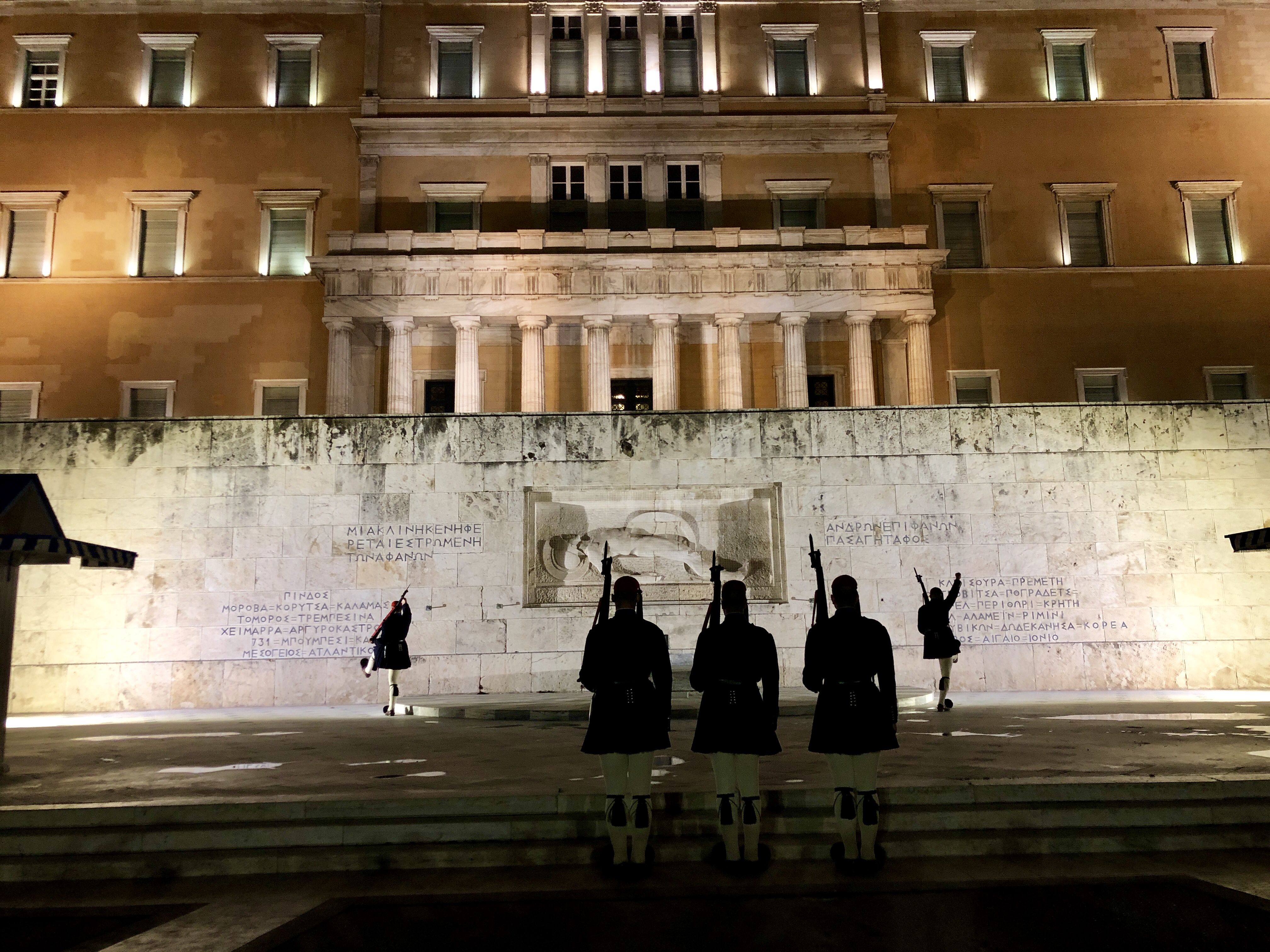 매 정시마다 국회의사당 앞 광장에서 호위무사들의 교대식이 있기에 걸어서 보러 간다.