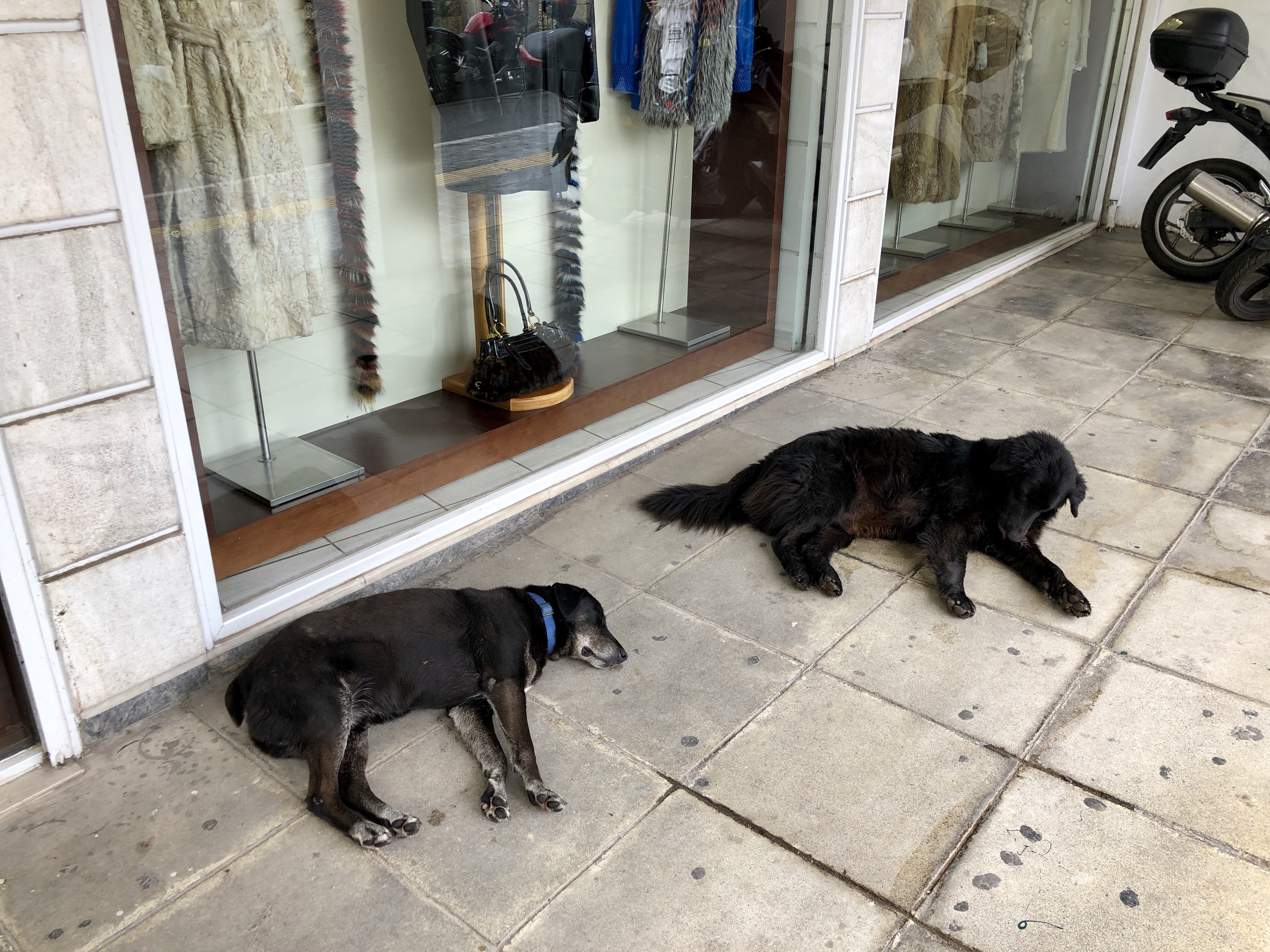 시간이 되어 모임 장소로 가는데 그리스 강아지들이 평화롭게 누워있어서 한번 찍어봤다.