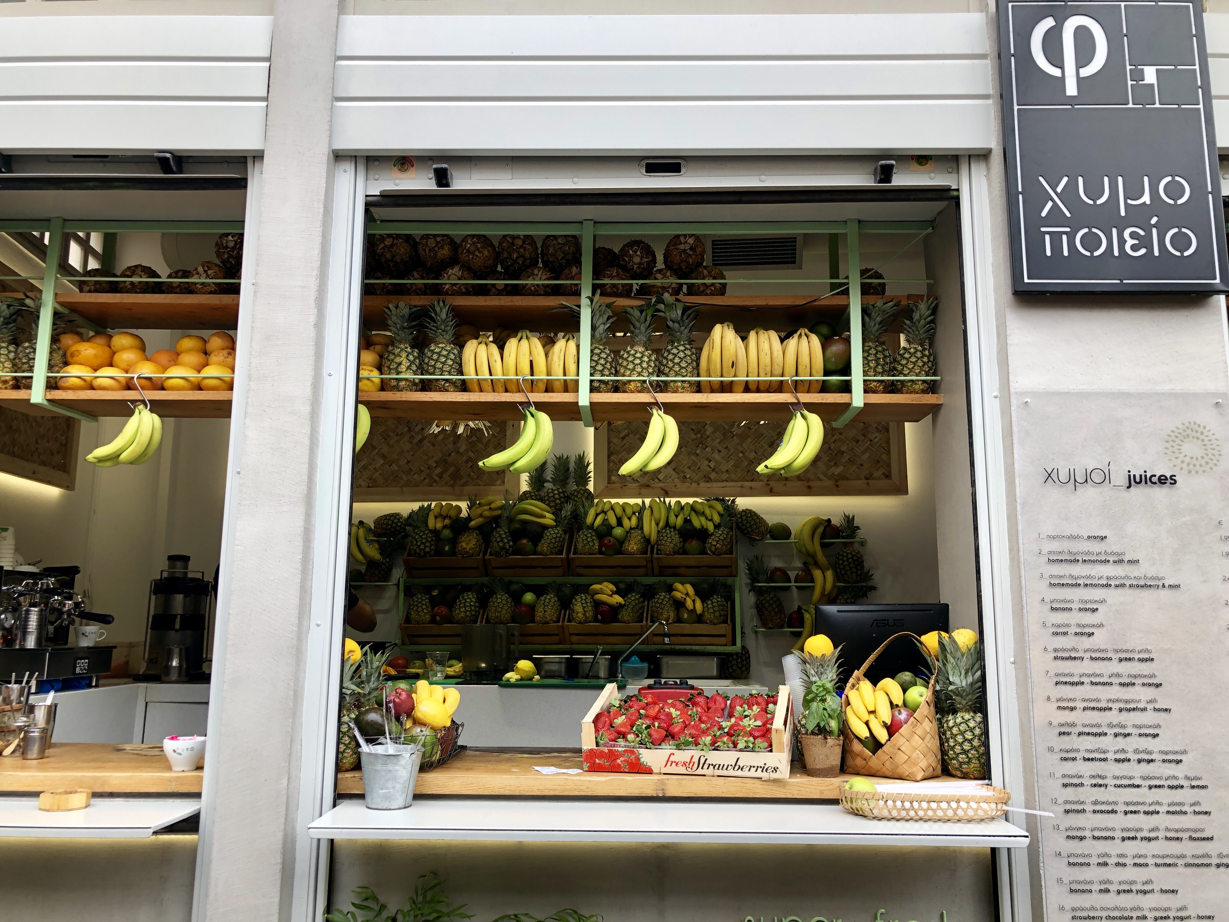 다니다 보니 살짝 목이 말라 신선한 그리스의 과일주스 한잔을 마셔본다.