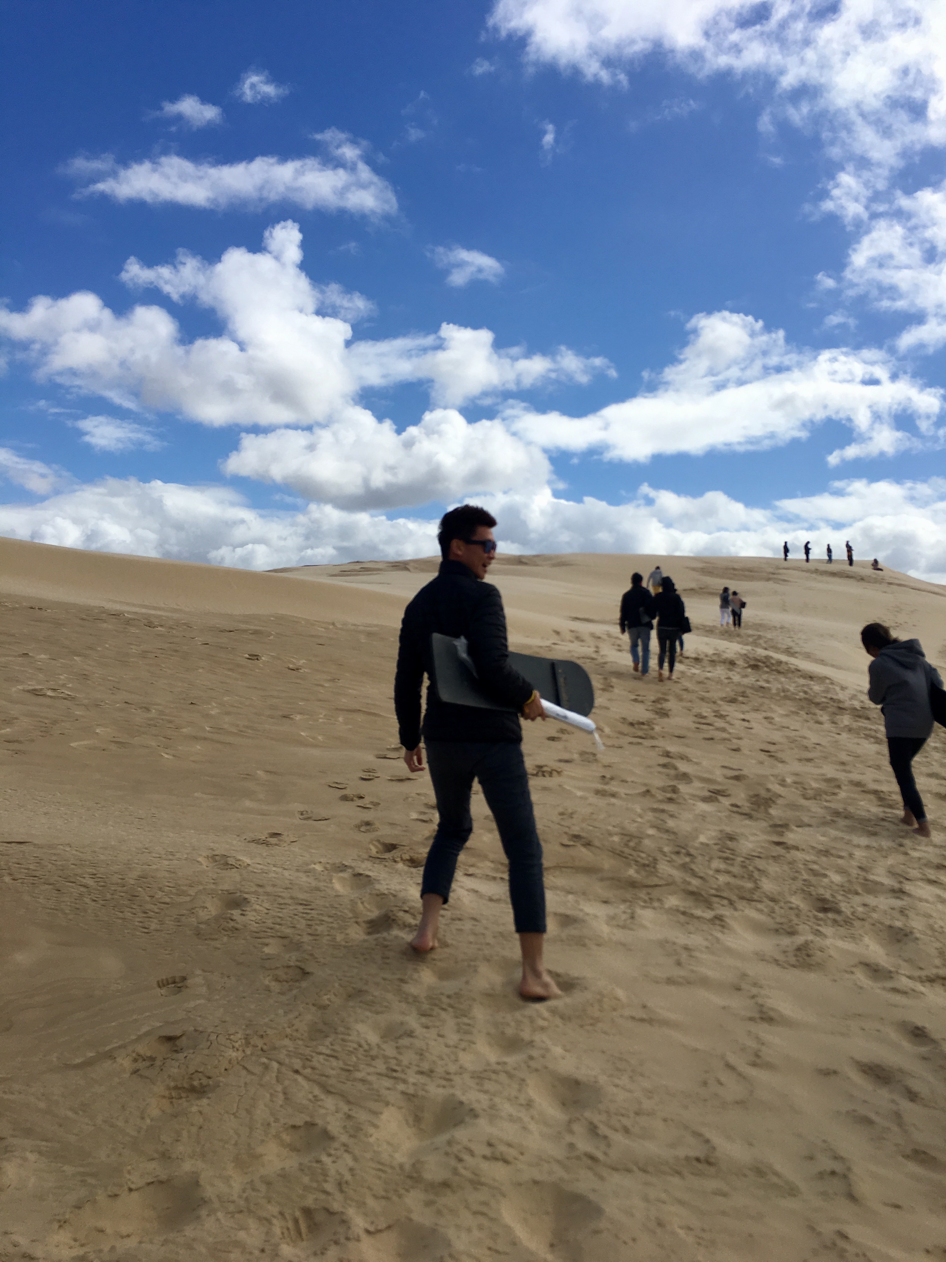 샌드보딩에서 가장 힘든점은 재미있게 타고 내려가서 다시 타러 모래언덕을 걸어올라오는 것이었다.