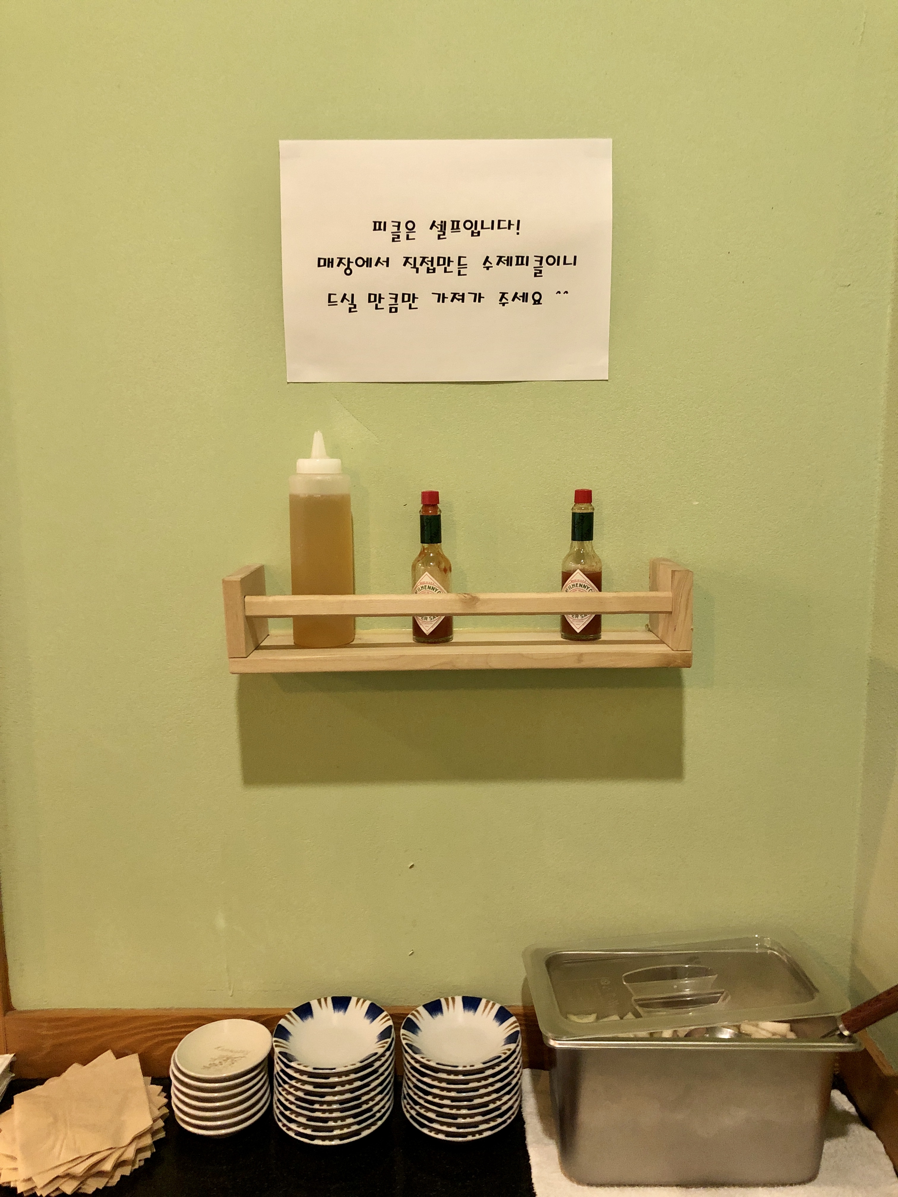 매장 내부 한쪽에 셀프바가 있는데요! 피클도 직접 수제로 만들었다고 하십니다.