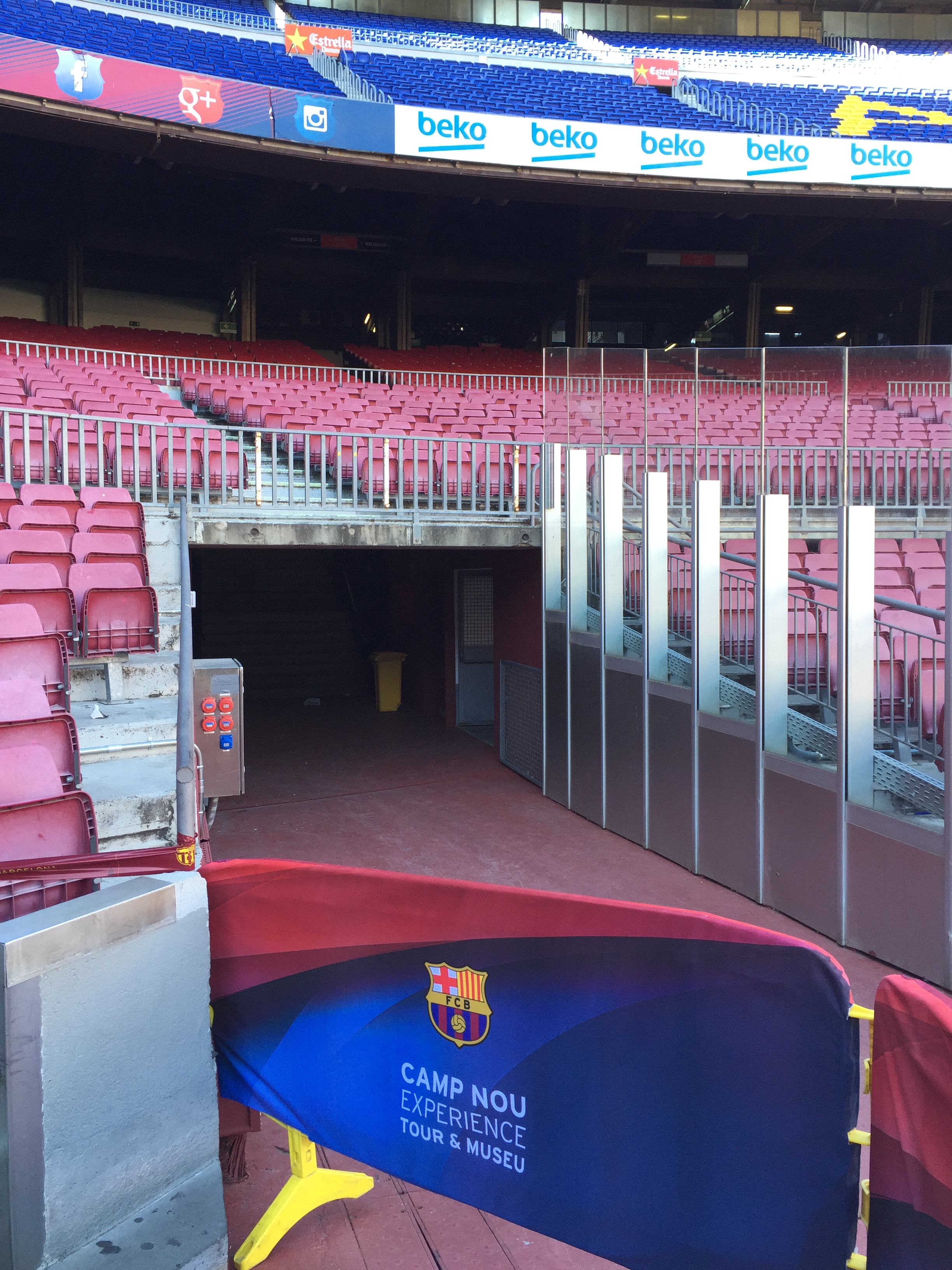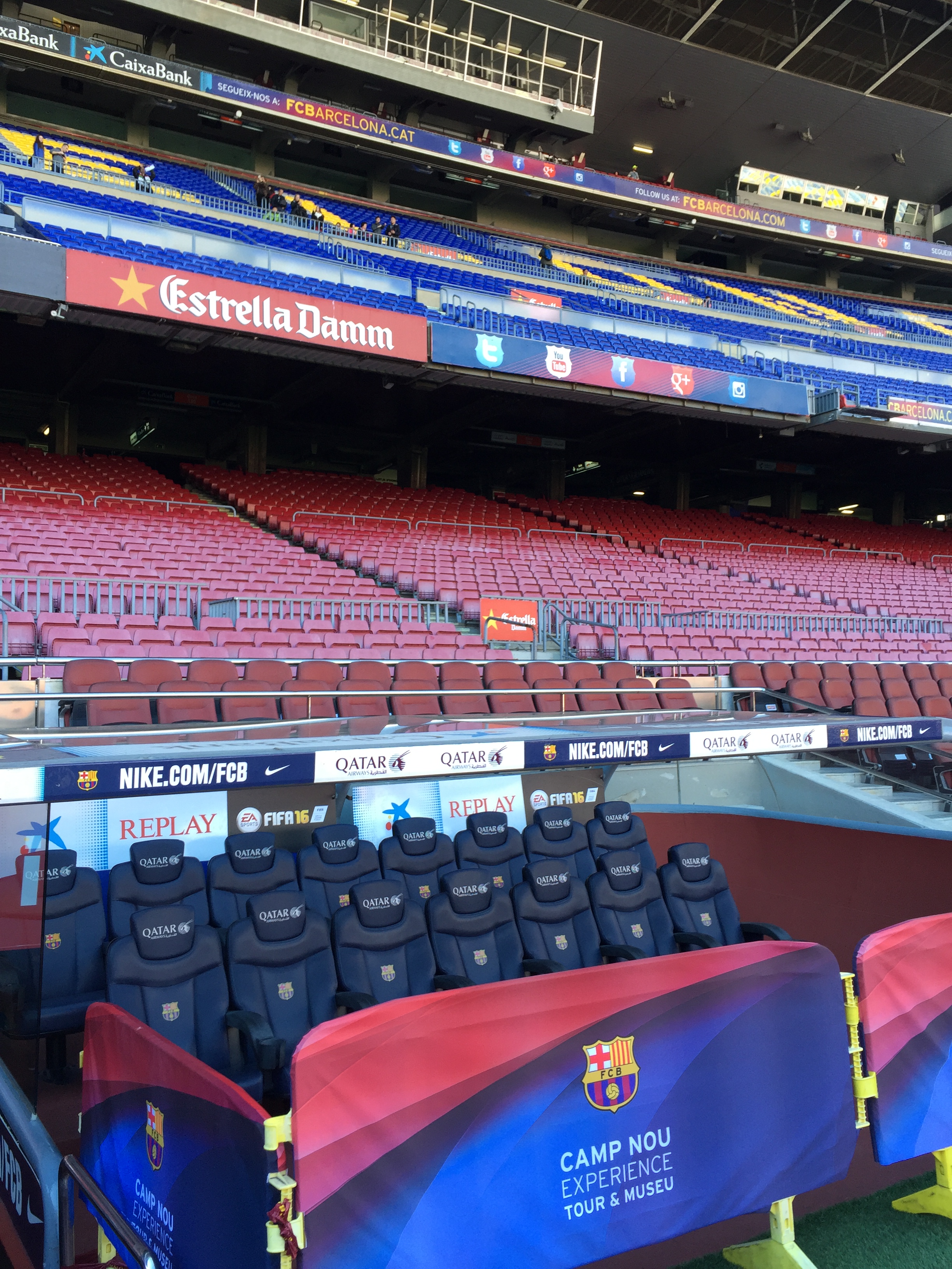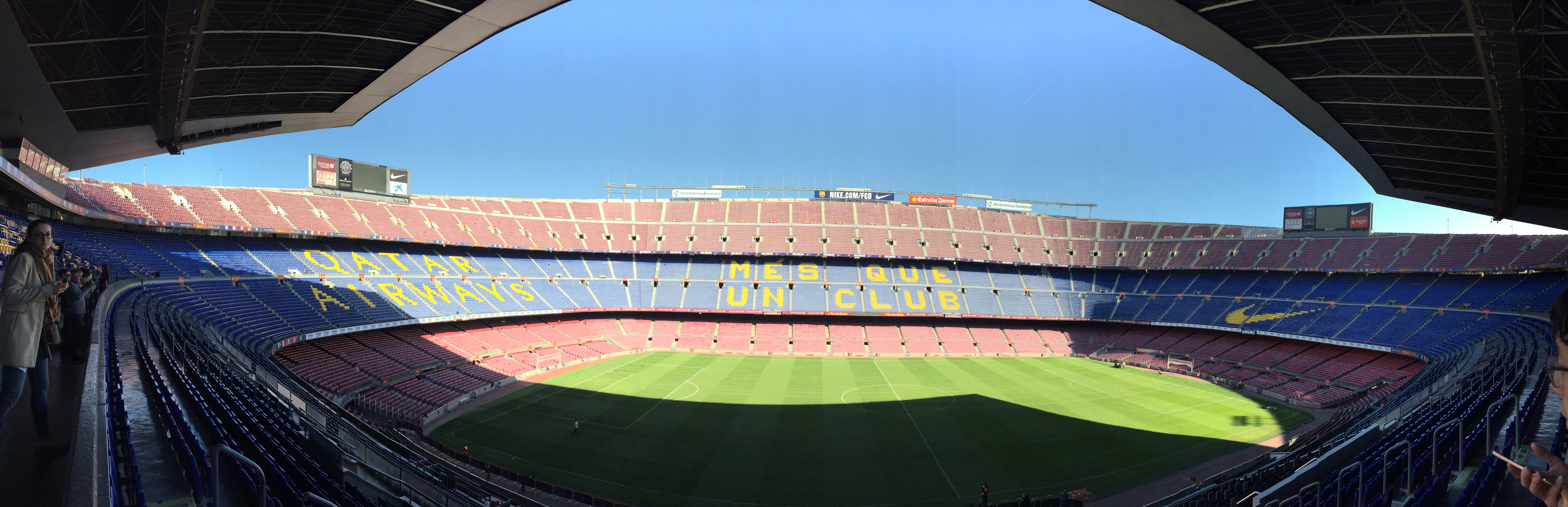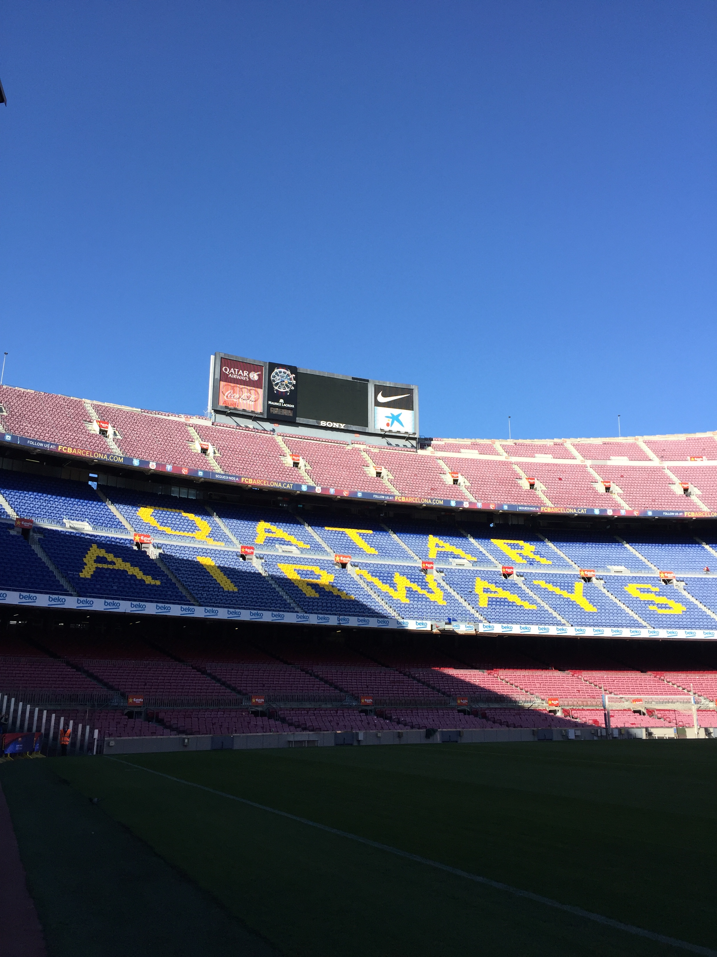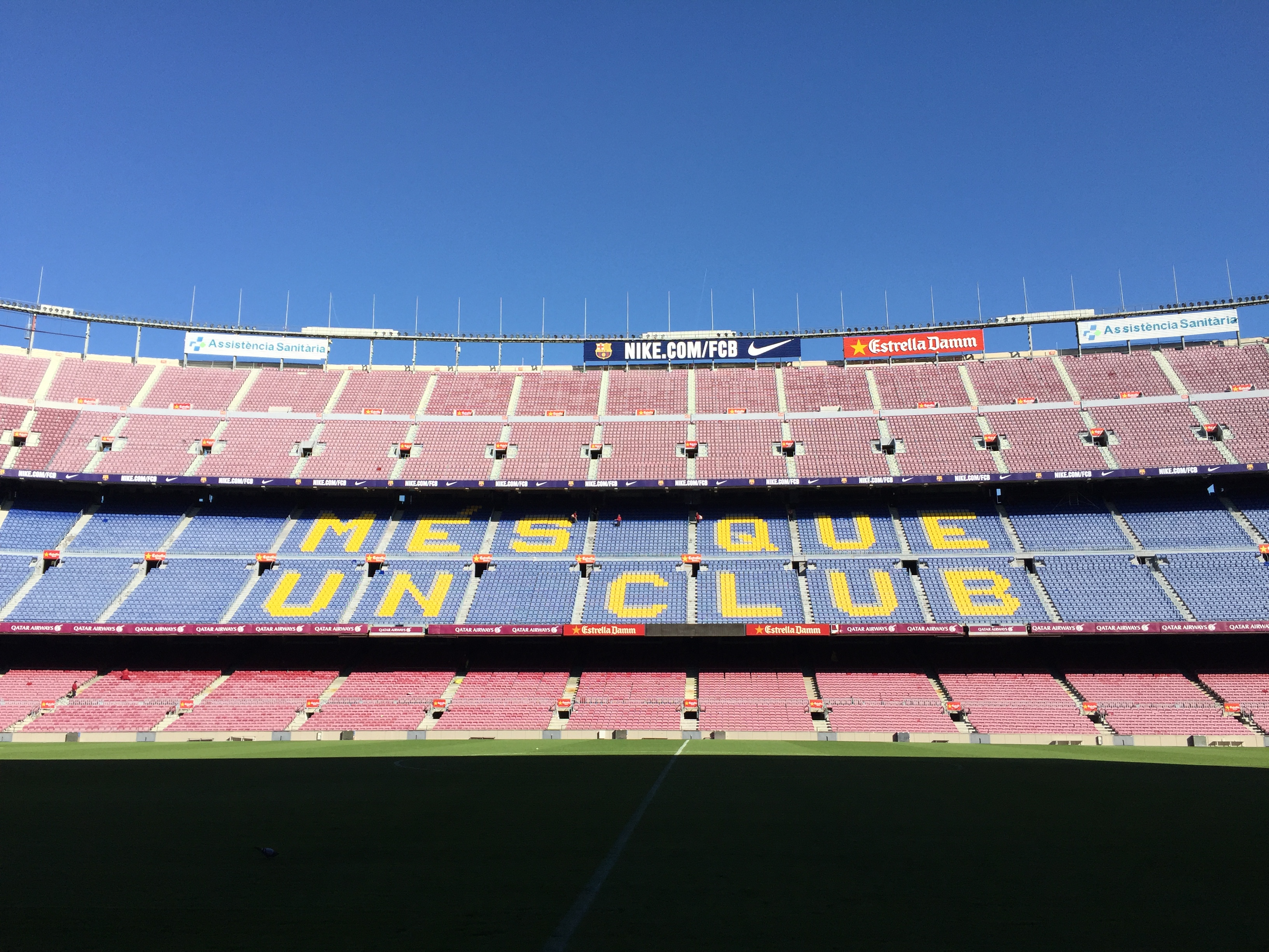 캄프누는 약 10만명을 수용할 수 있는 거대한 경기장으로 잔디를 밟으며 올려다본 경기장은