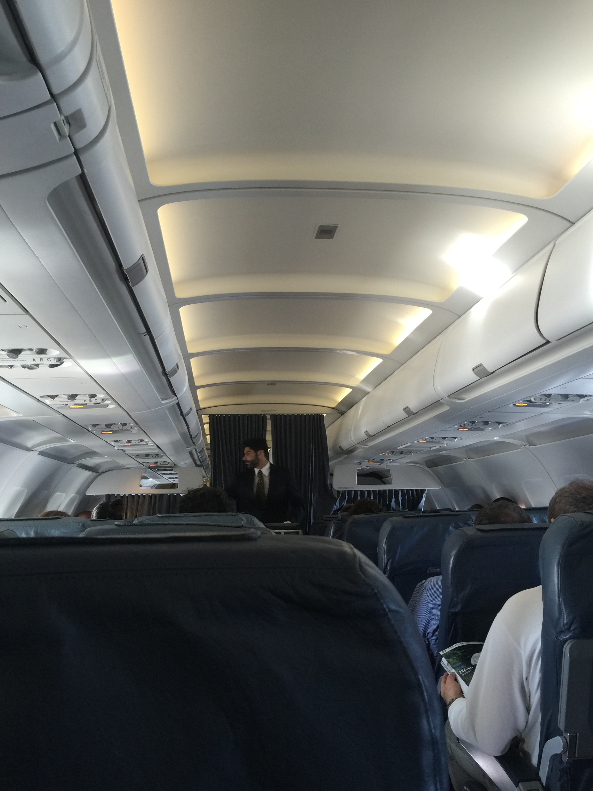 바로 대부분 여자들로 이루어진 승무원이 이 비행기는 남자들위주로 이우러졌다는 점이다.
