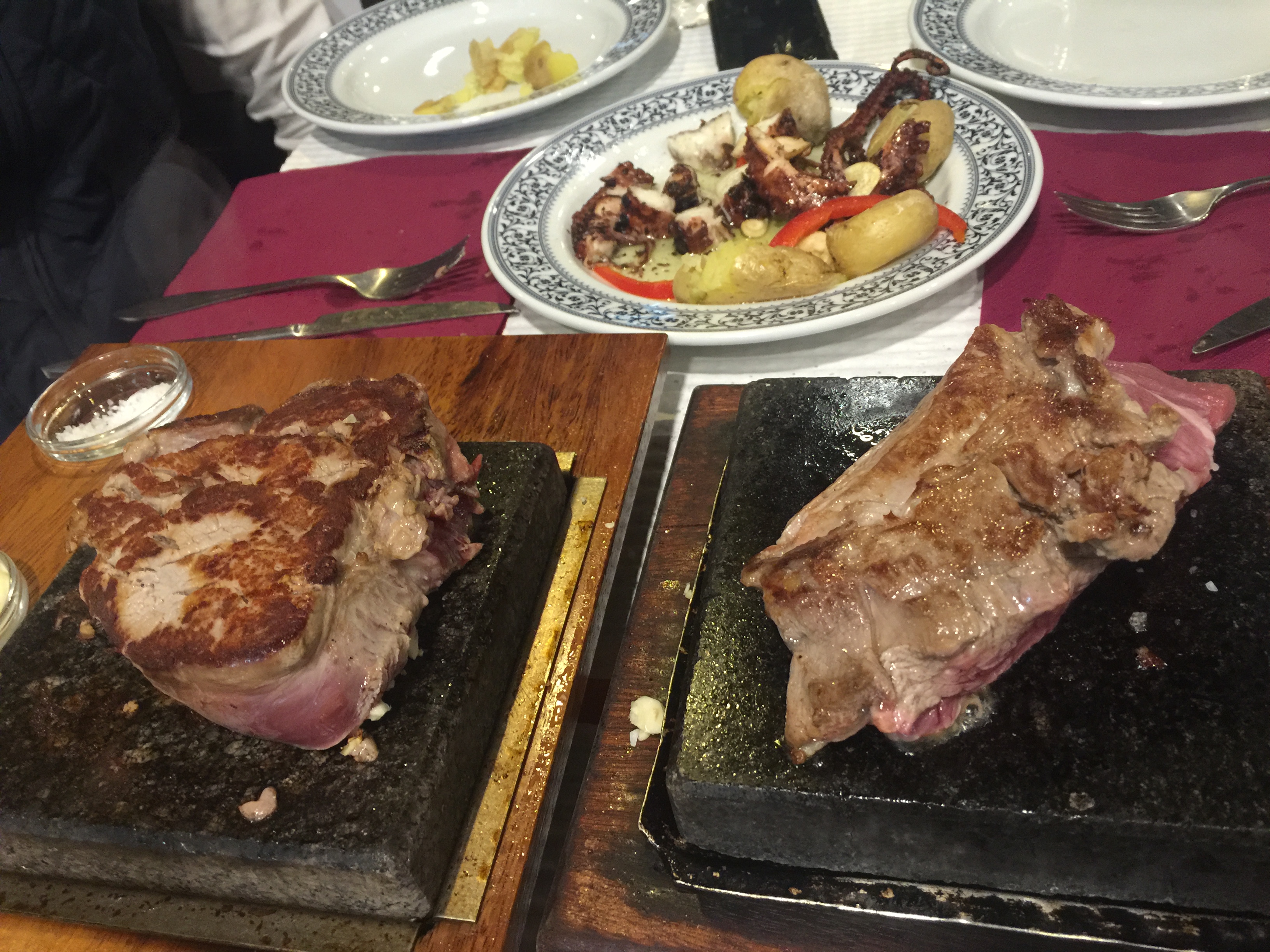 그리고 리스본 맛집 오치아도의 대표요리인 돌판 스테이크는 1인당 1개씩 주문했다.