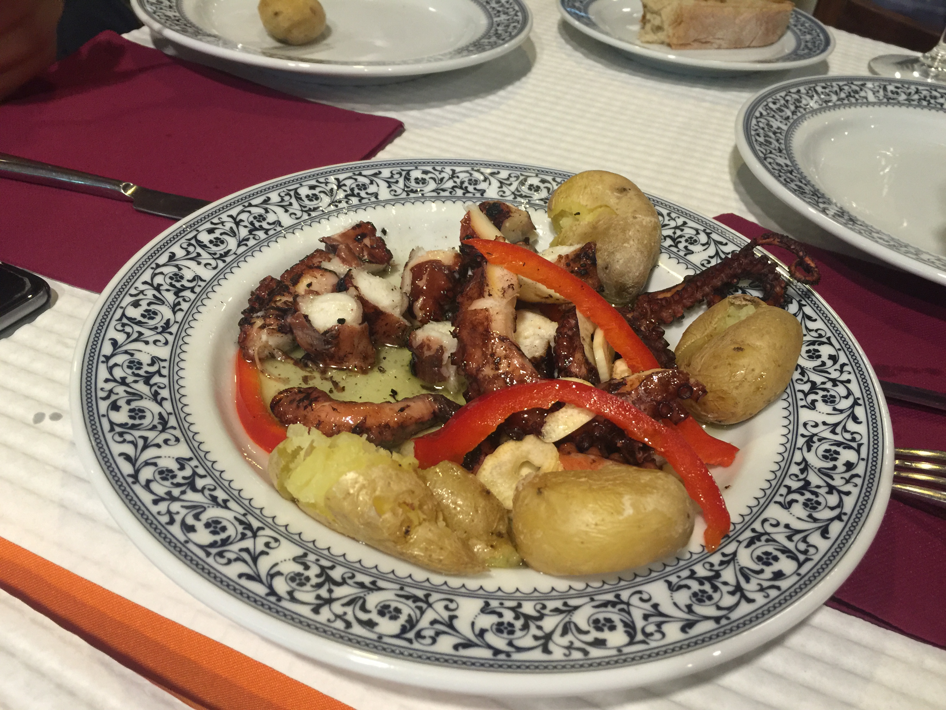 동행들과 나는 함께 먹을 요리로 감자와 문어 요리를 주문했고 와인도 한병 주문했다.