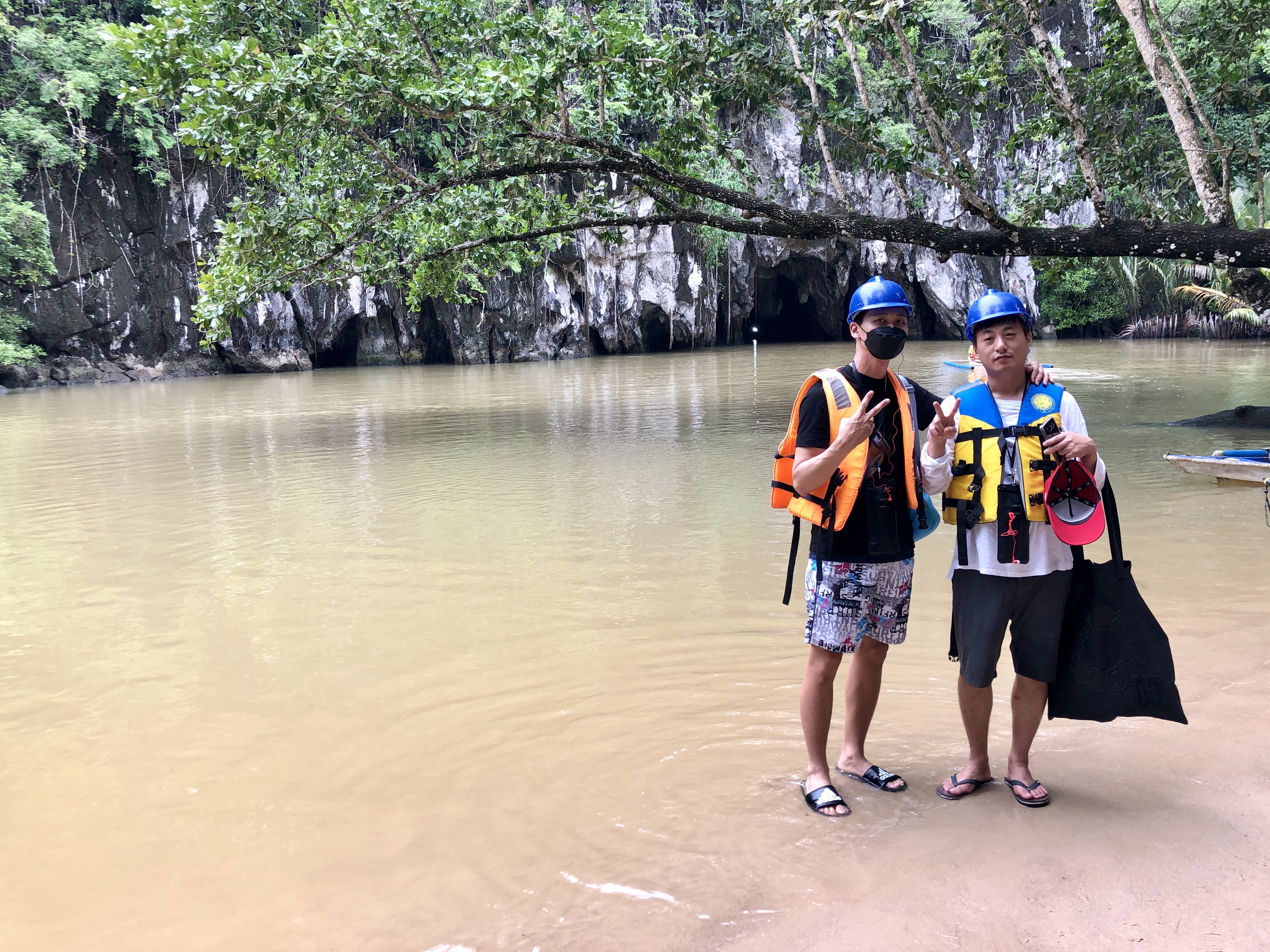 우리의 순번을 기다리며 지하강 투어 앞에서 기념촬영에 전념한다.