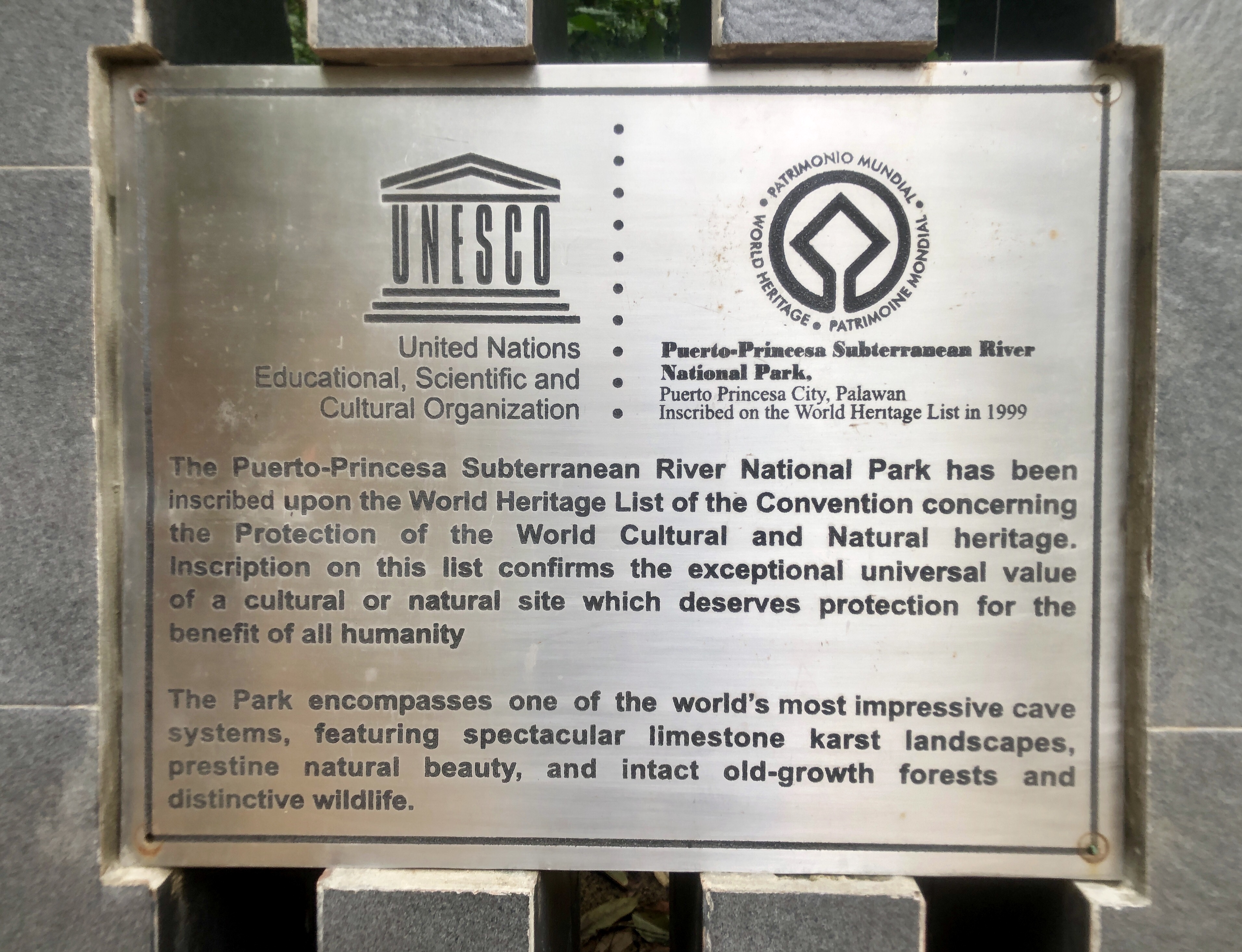 입구에서 기념촬영 후 유네스코 문화유산과 세계 7대 자연경관 표지판을 보며 투어 장소로 걸어간다.
