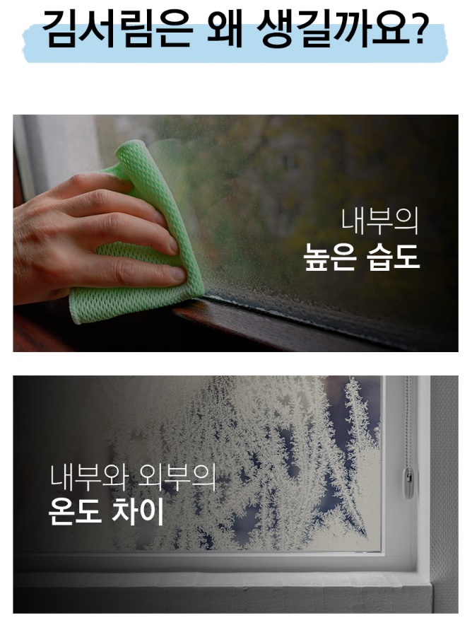 우선 김서림이 생기는 이유는 두가지인데, 한가지가 앞서말한 내부와 외부의 온도차이이고,