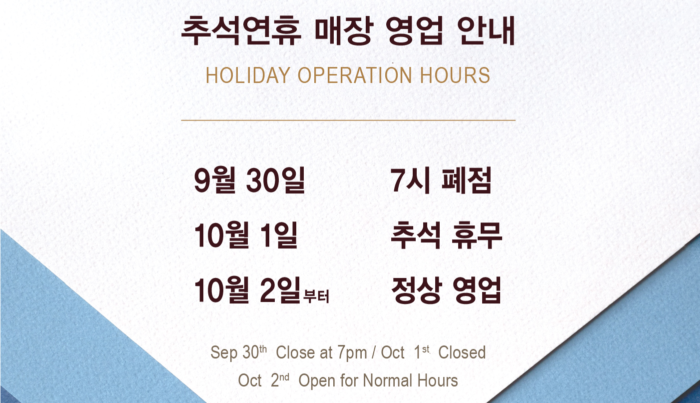 10월 1일 - 추석당일 휴무
