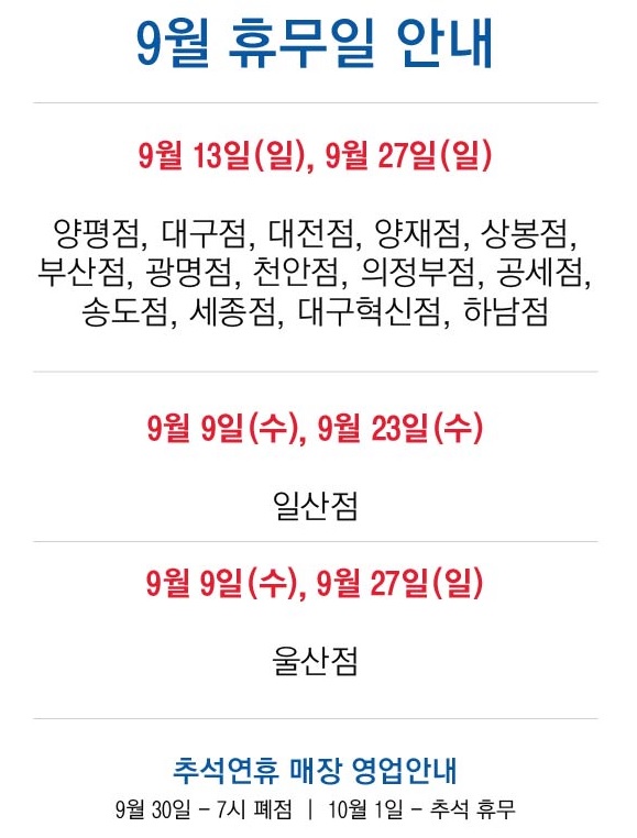 9월 홈플러스 휴무일 안내