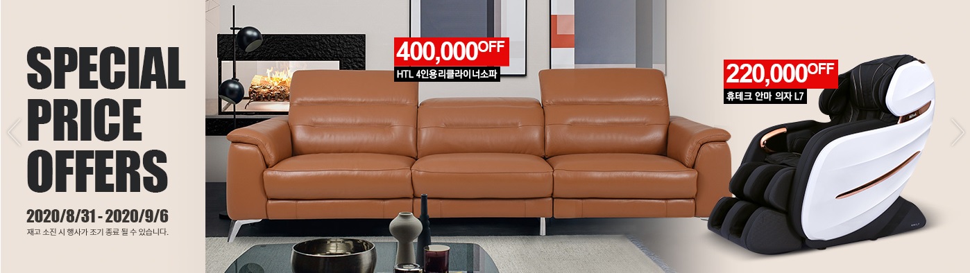 코스트코에서는 8/31~9/6 동안 아래 'HTL소파와 휴테크 안마의자' 할인 이벤트를 진행중입니다.
