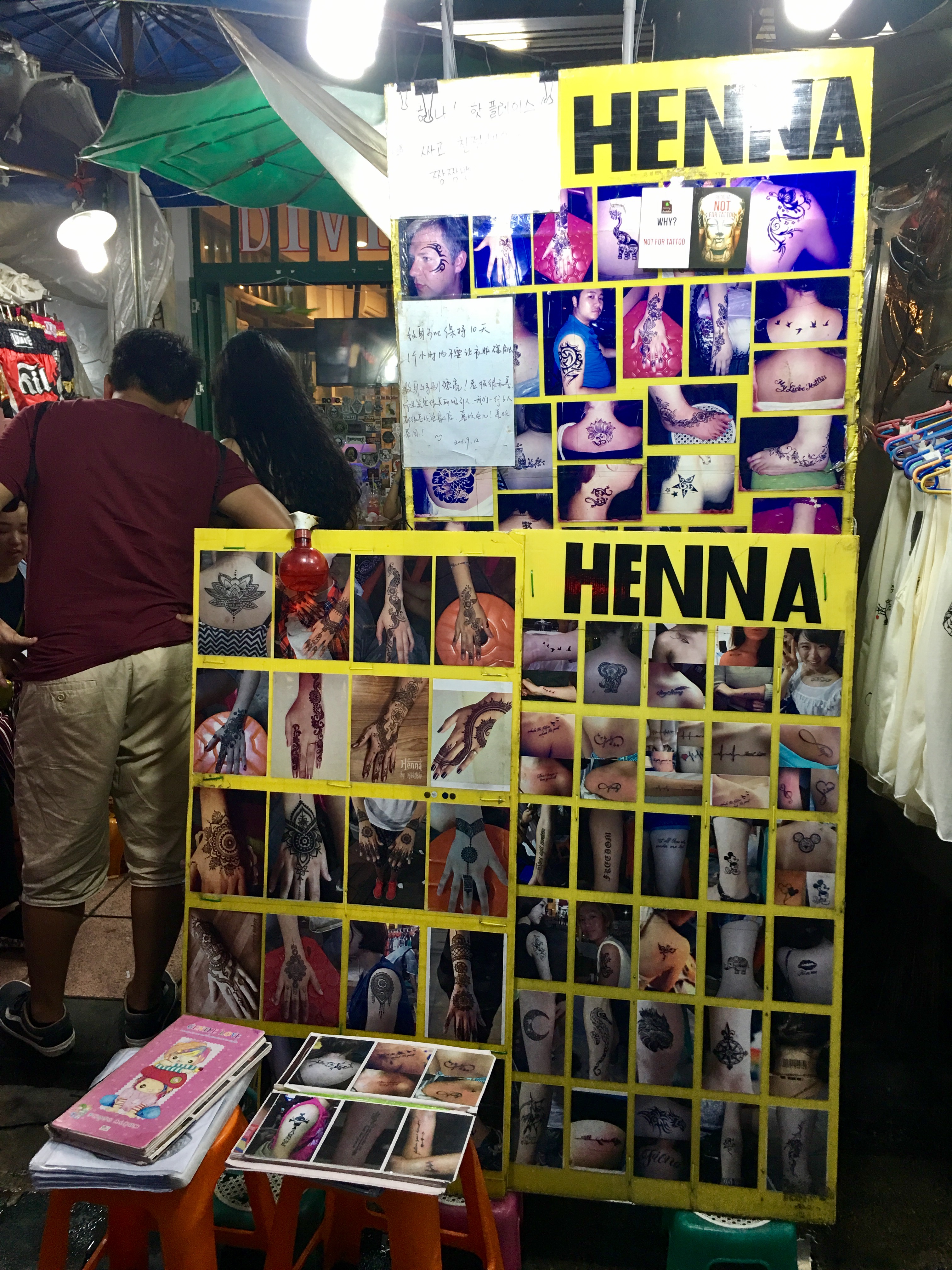 카오산 로드는 문신과 헤나 마사지 그리고 스포츠 펍 등 즐길거리와 볼거리도 많다.