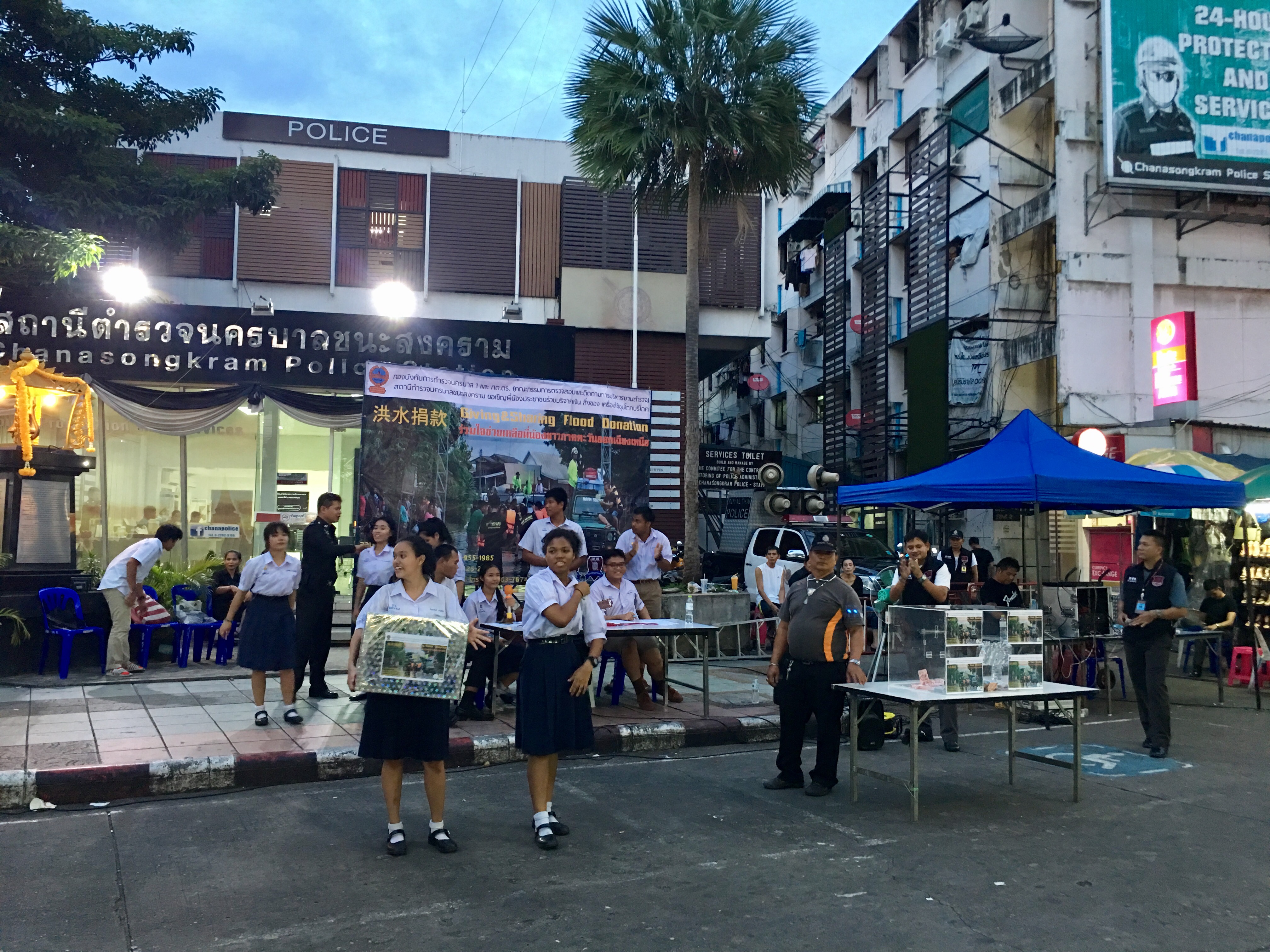 마침 입구에는 교복을 입은 학생들이 모금활동을 하며 공연을 하고 있었다.