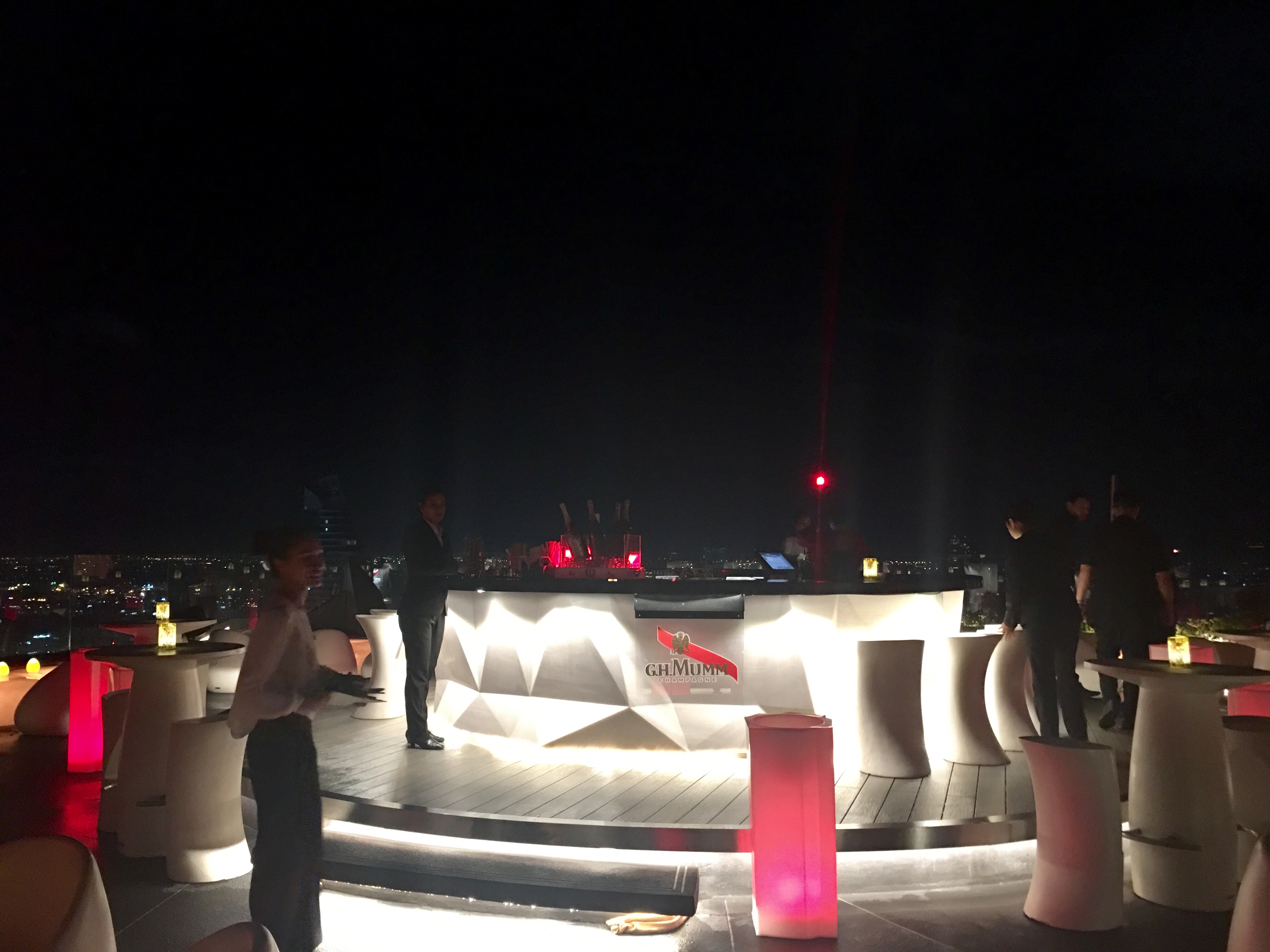 레드 스카이의 CRU Champagne Bar 는 도시 스카이라인의 극적인 360도 전망을 보여주었다.