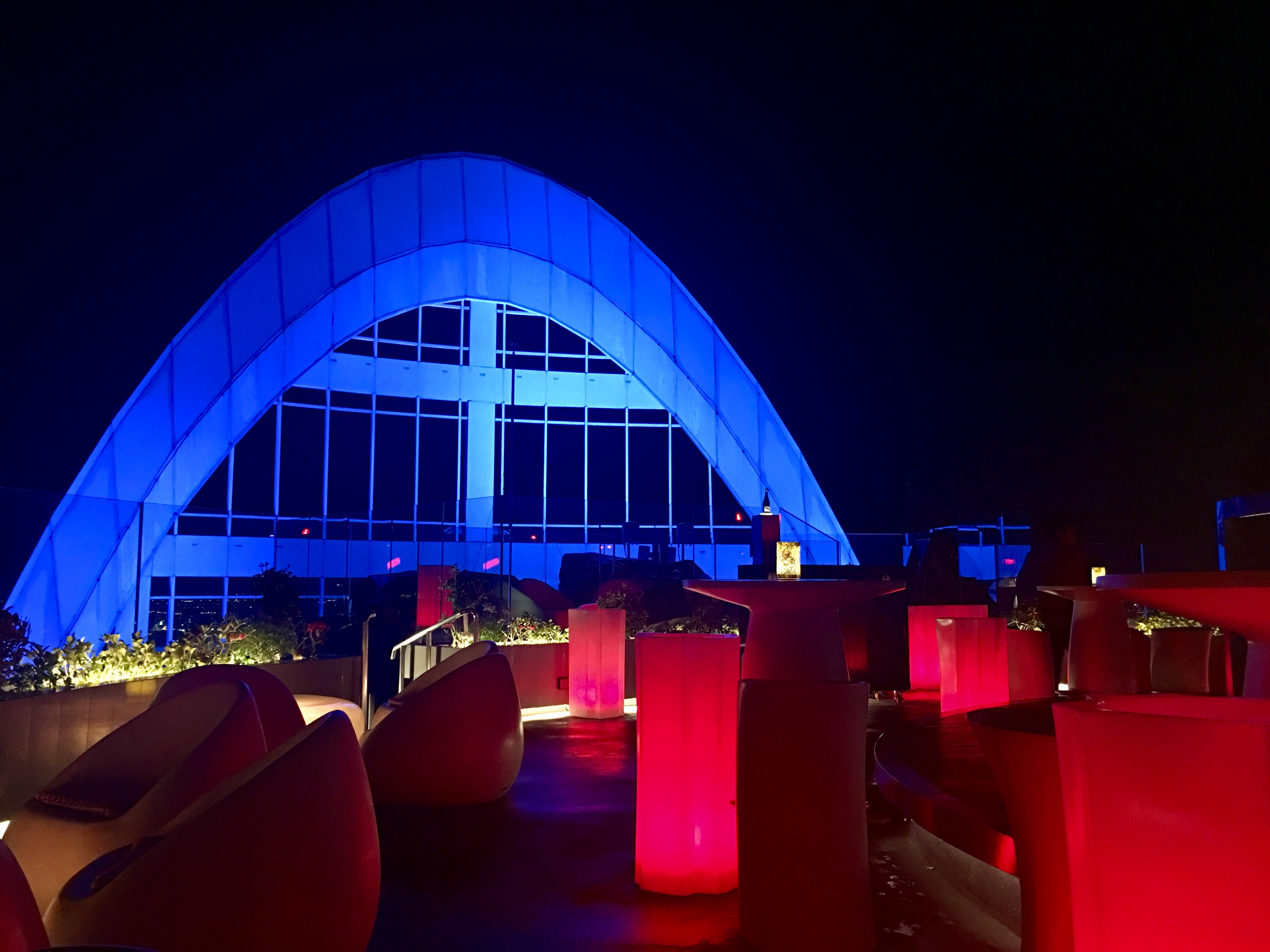 레드 스카이의 CRU Champagne Bar 는 도시 스카이라인의 극적인 360도 전망을 보여주었다.