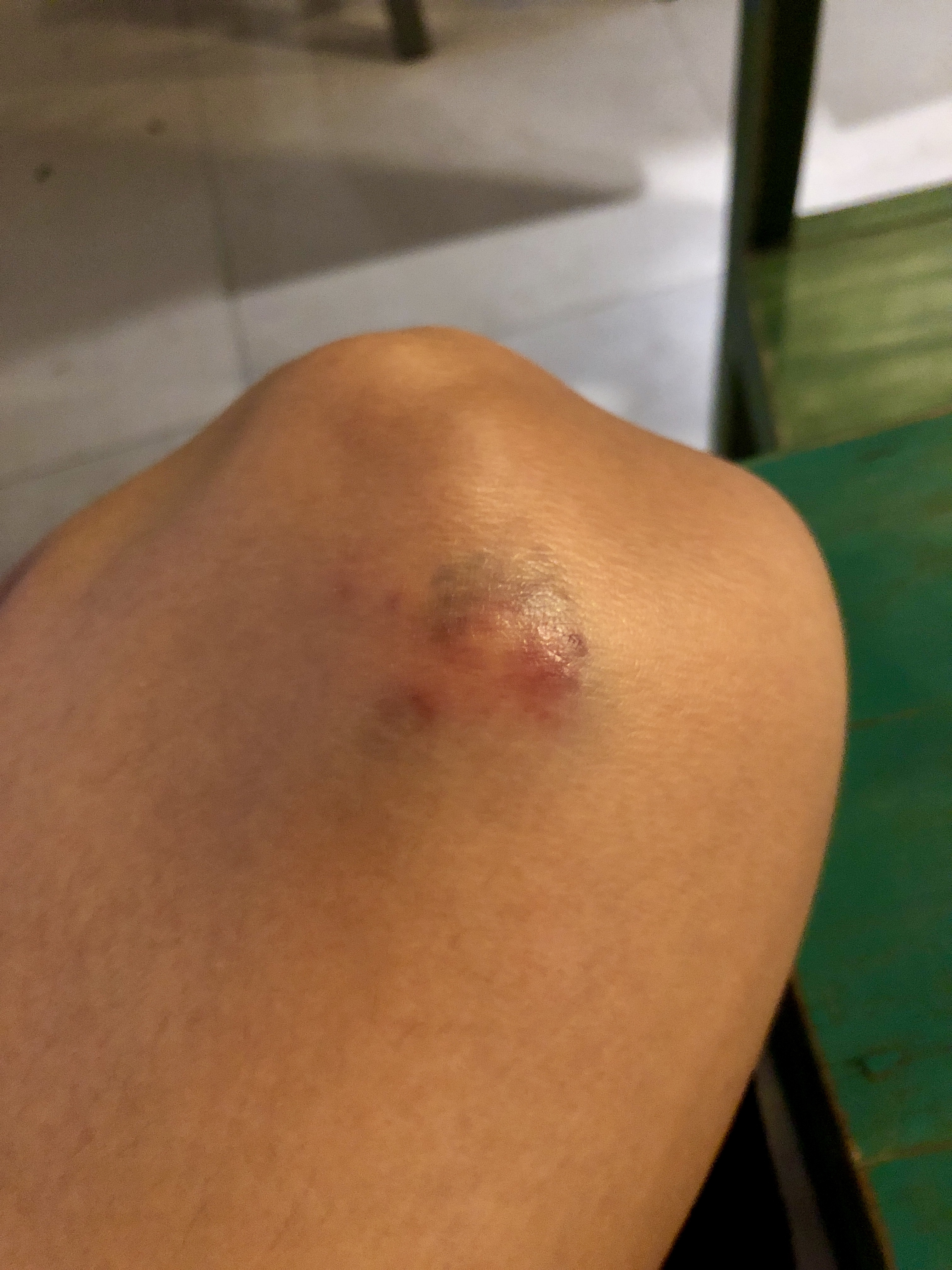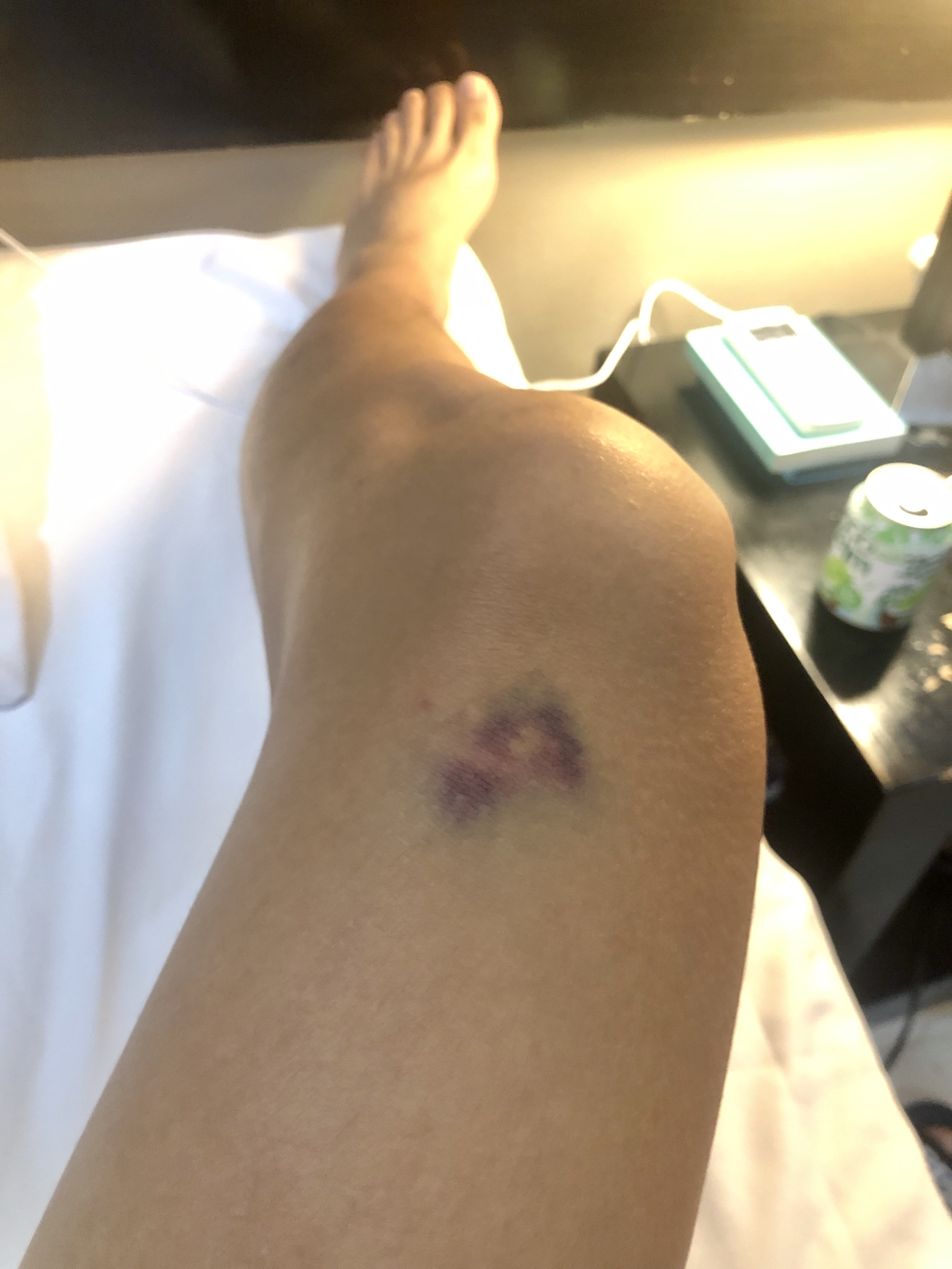 마지막 밤을 편하게 보내고 아침에 일어나 보니, 예상대로 어제 부상당한 곳에 멍 부위가 커져있었다.