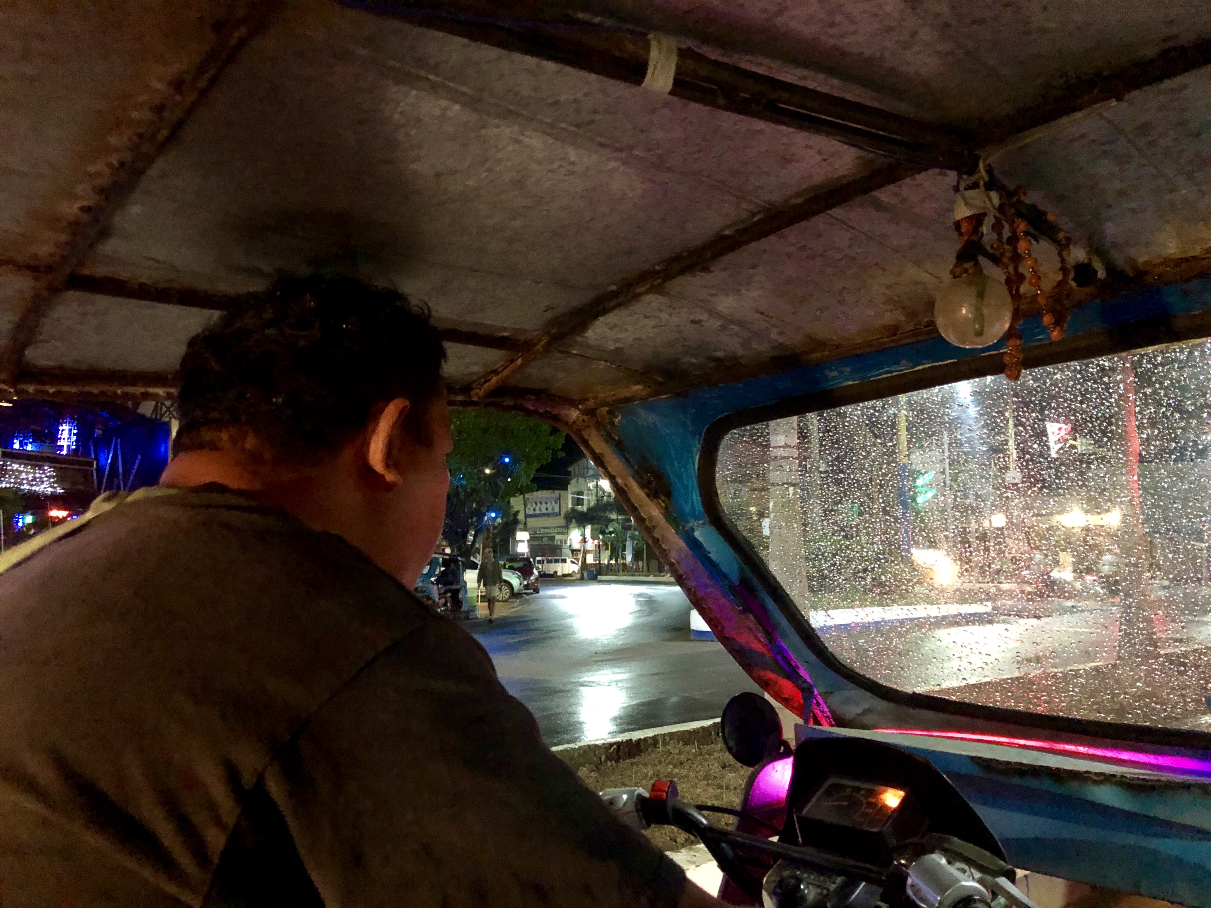 밤에 숙소로 돌아가기 위해 마지막 트라이시클을 탄다.
