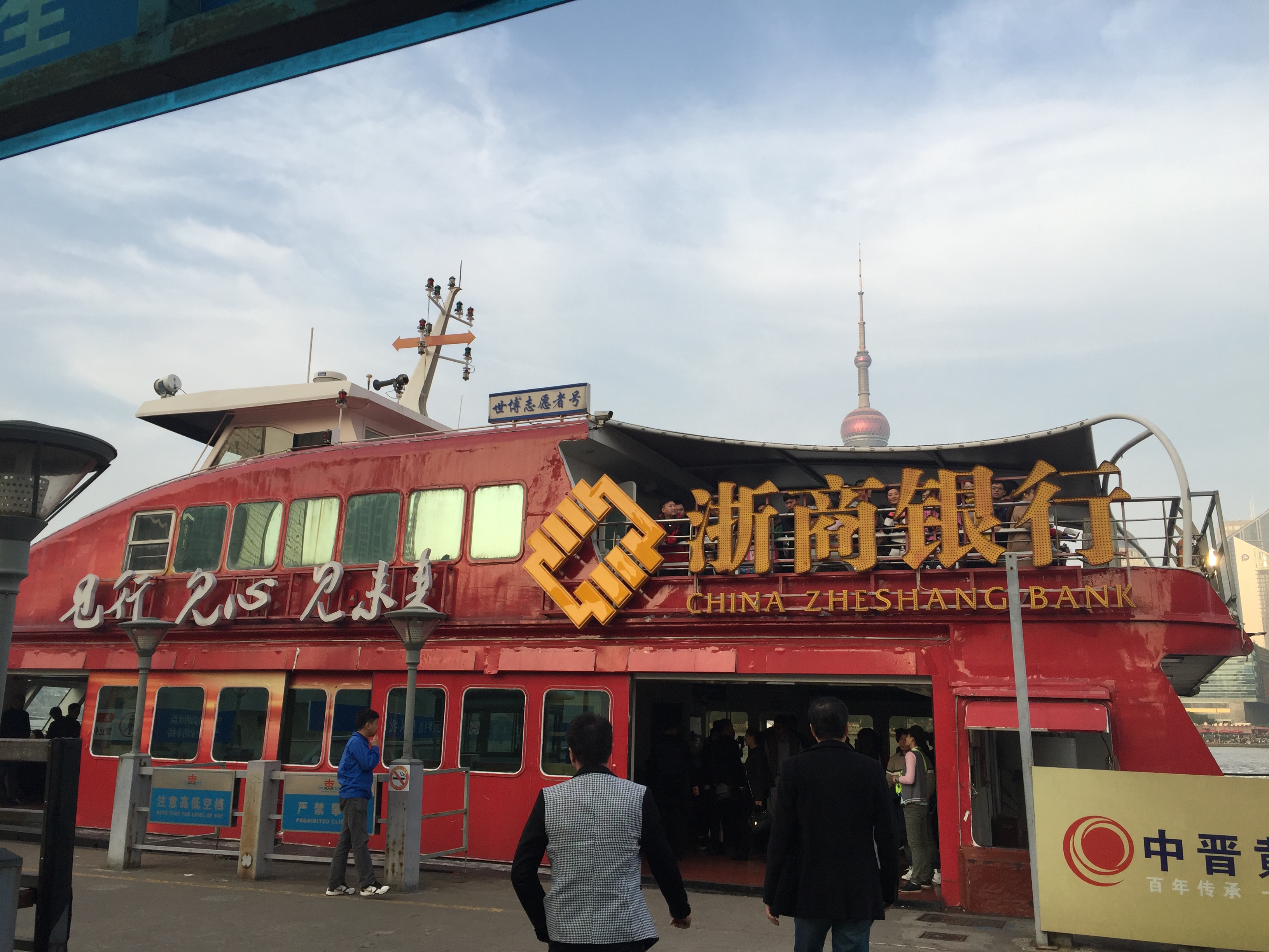 승차료는 단돈 2위안으로 우리돈 약 340원이면 배를타고 황포강을 건너갈 수 있는 대중교통이다.