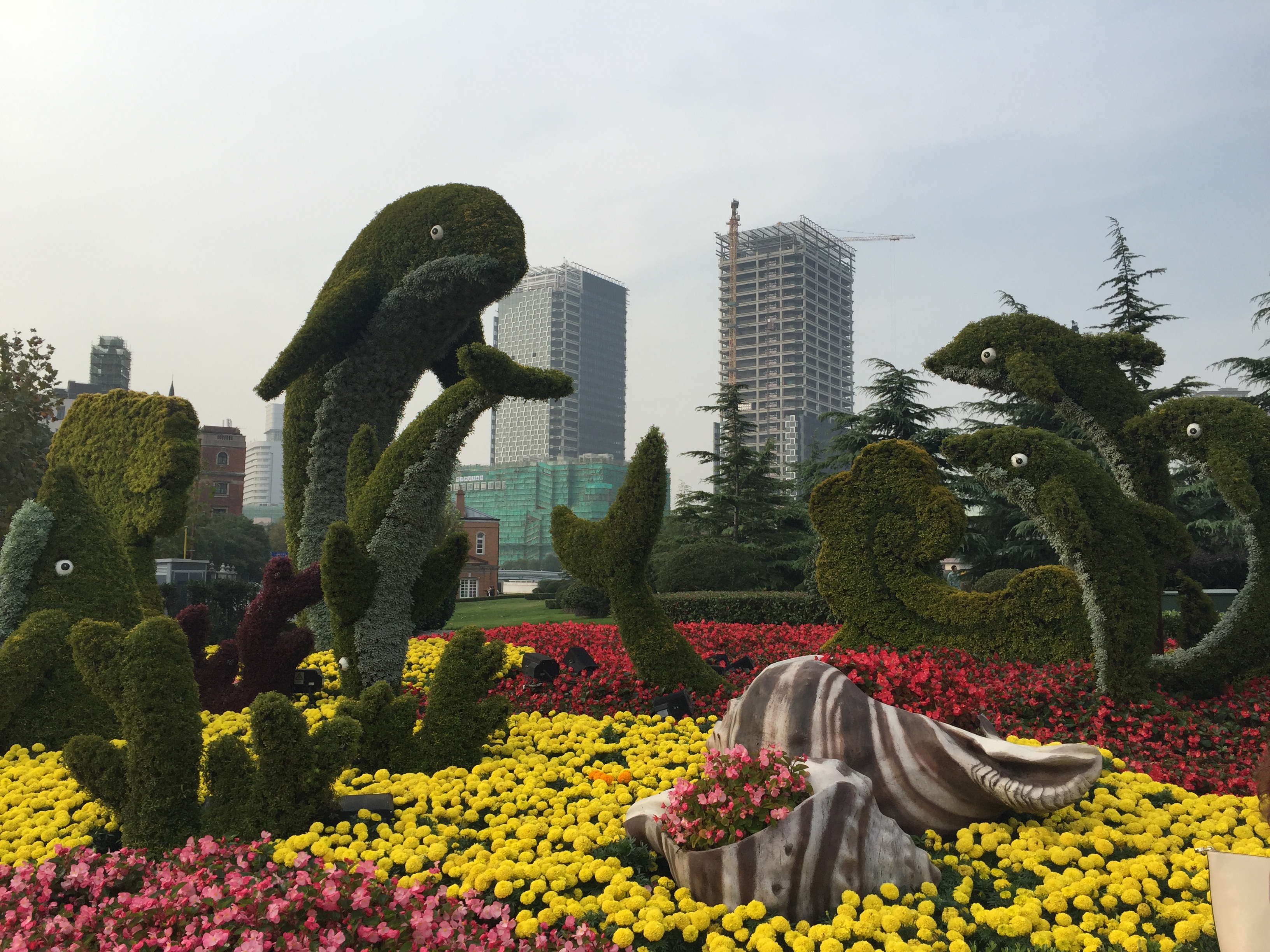 최초의 유럽식 공원인 황포공원은 황푸 강과 소주에서 퍼낸 퇴적물로 화원을 만들었다.