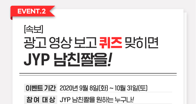 그리고 두번째 이벤트는 광고 영상보고 퀴즈 맞히면 JYP남친짤을 주는데요