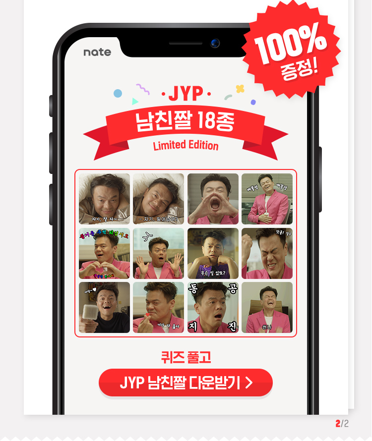 요새 유행하고 있는 JYP 남친짤 이모티콘도 준다고 합니다.