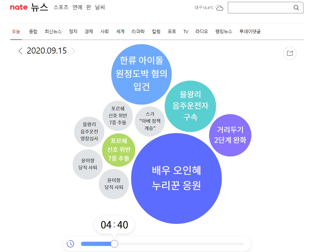 있도록 주요 뉴스의 핵심 키워드를 버블 모양으로 시각화한 뉴스 서비스입니다.
