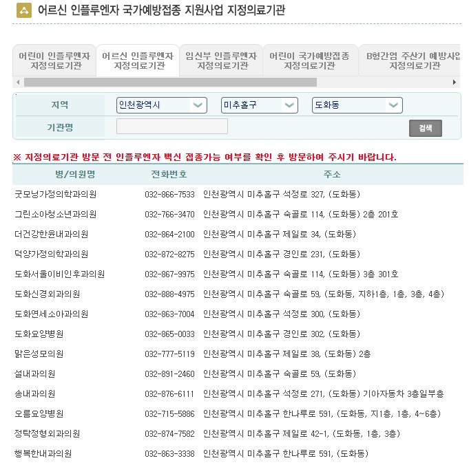 어르신 인플루엔자 국가예방접종 지원사업 지정의료기관은 위 사이트를 통해