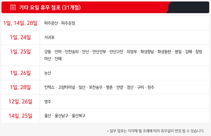 10월 1일,14일,28일 휴무 홈플러스 점포로는 파주문산, 파주운정점이 있고
