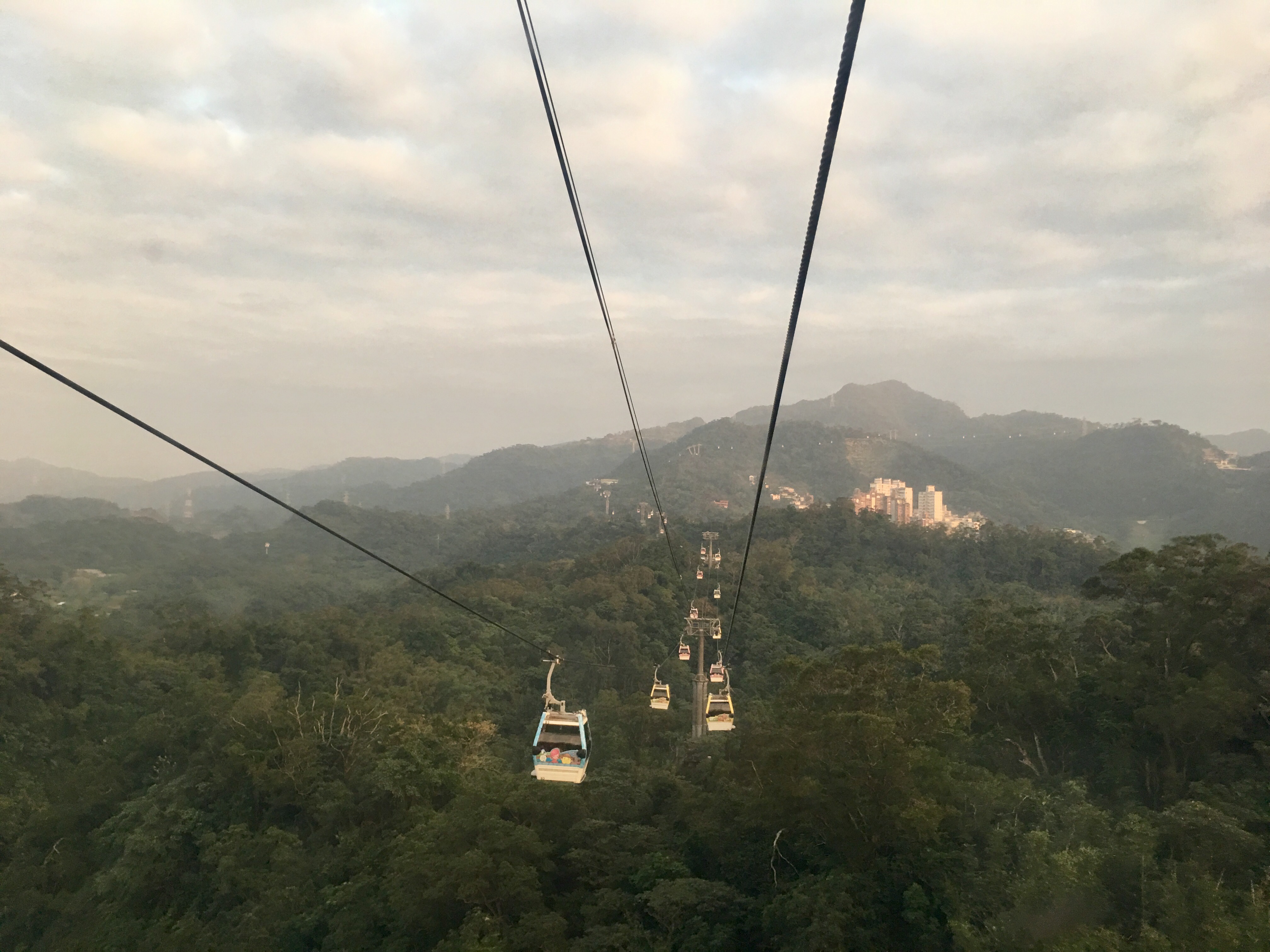 동물원 역 곤돌라에 올라타면 곤돌라는 산을 타고 오르락 내리락 이동하며 첫 번째로 보이는 풍경은