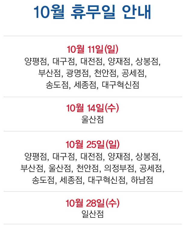 4) 10월 25일 (일) 휴무 코스트코 점포