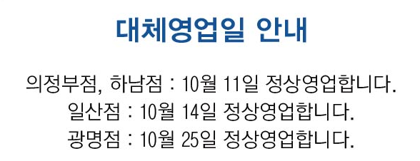 추석연휴 휴무로 인해 대체 영업을 하는 점포도 몇군데 있습니다.